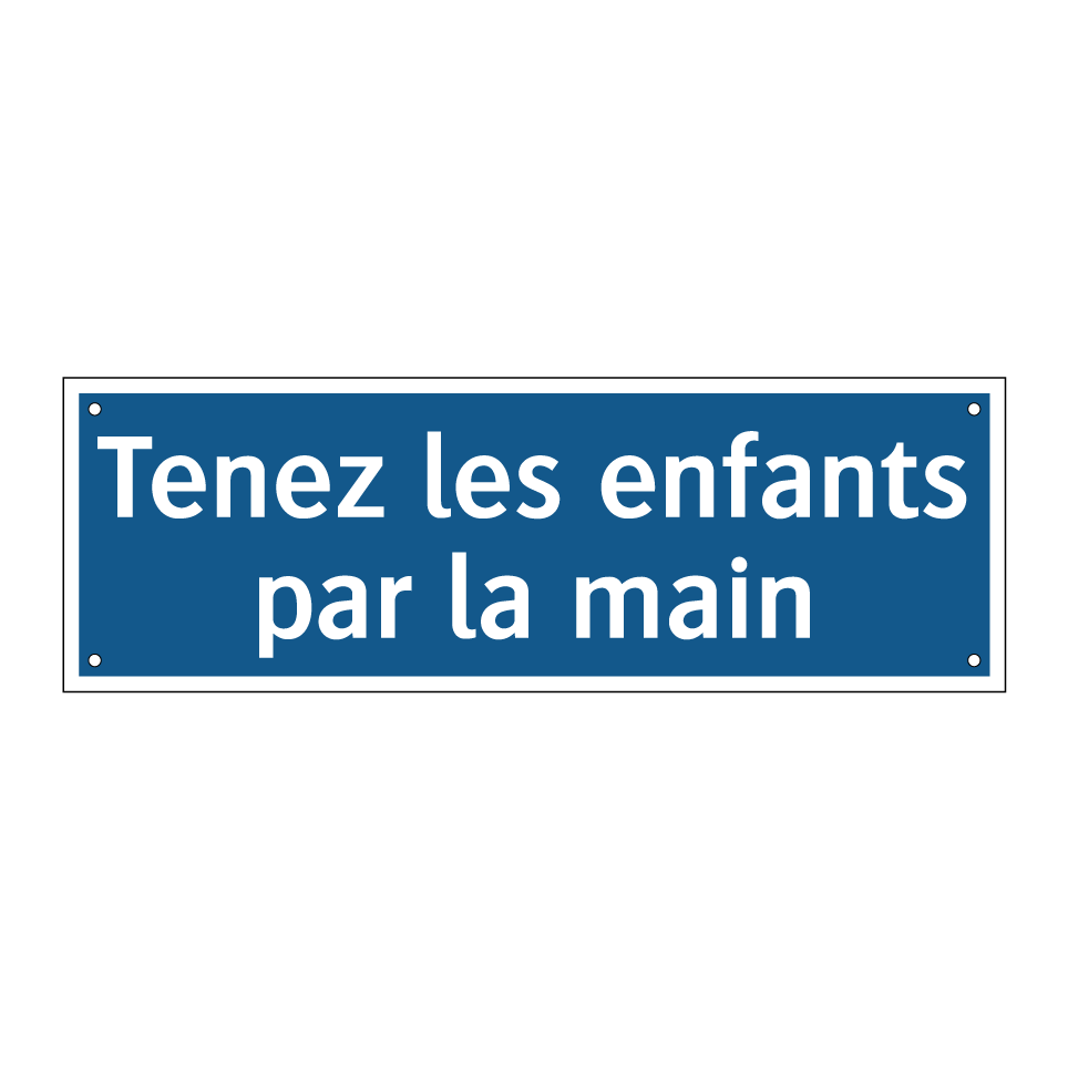 Panneau d'obligation avec le texte : "Tenez les enfants par la main"