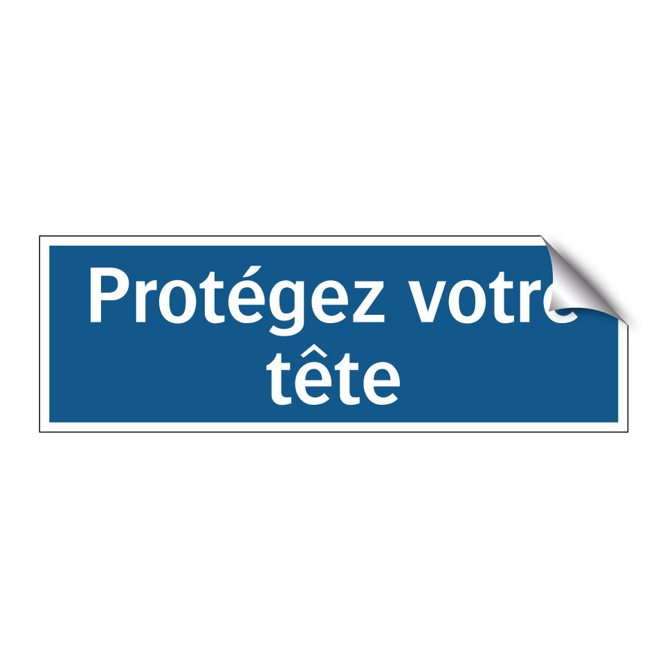 Panneau d'obligation avec le texte : "Protégez votre tête"