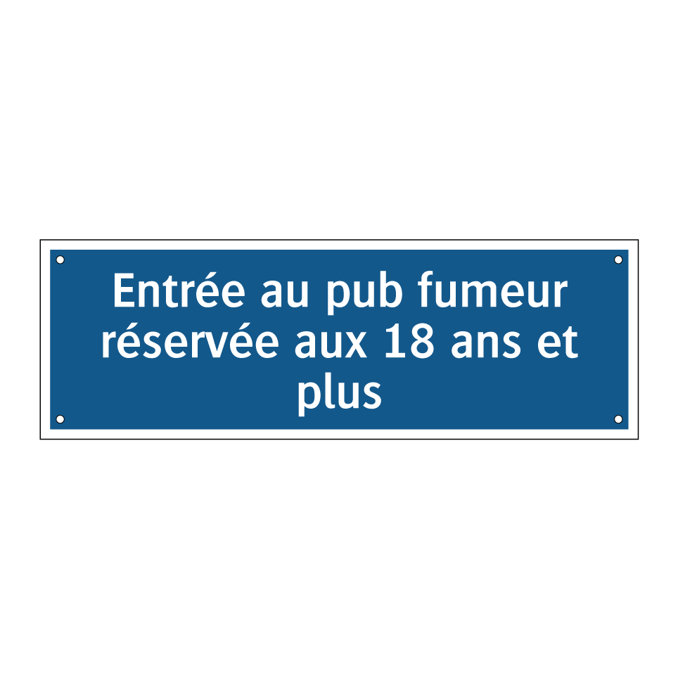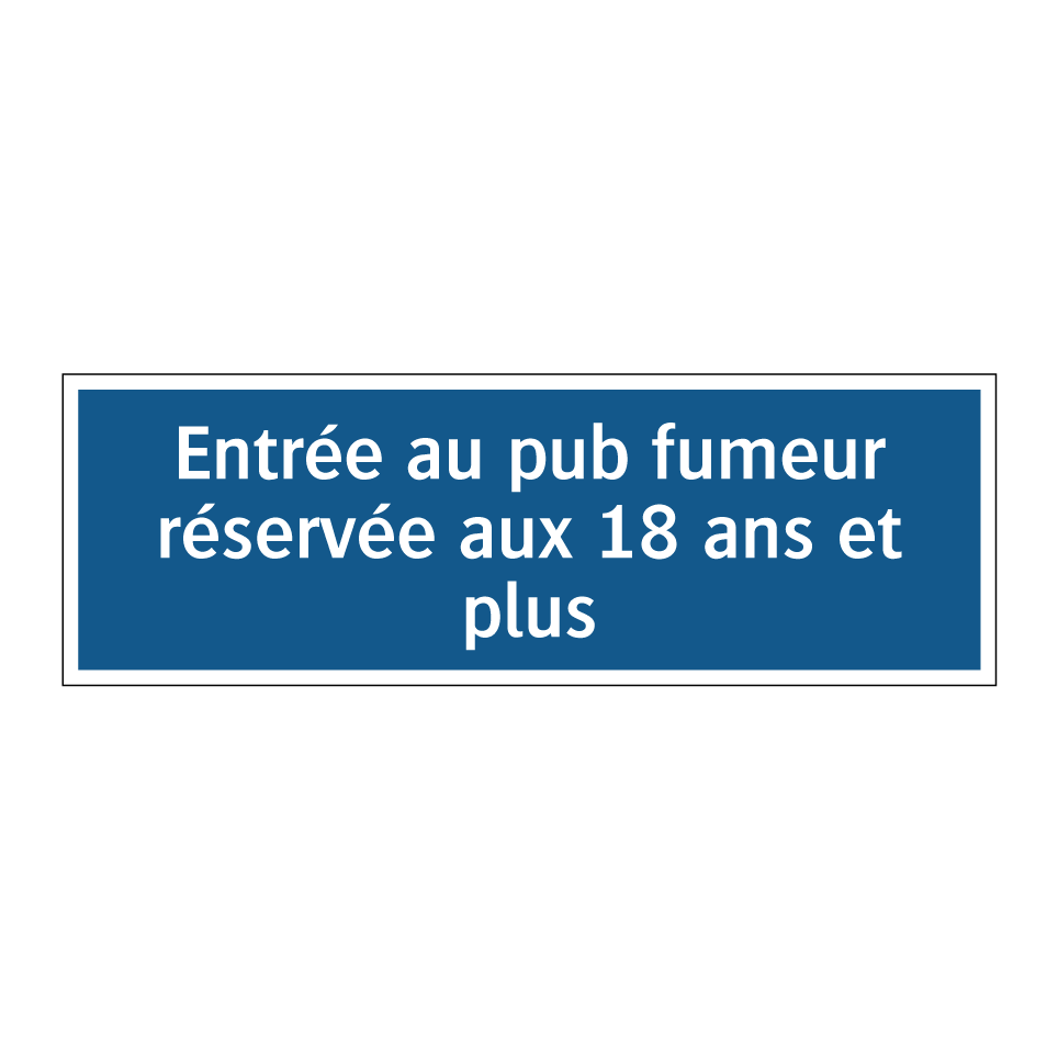 Panneau d'obligation avec le texte : "Entrée au pub fumeur réservée aux 18 ans et plus"