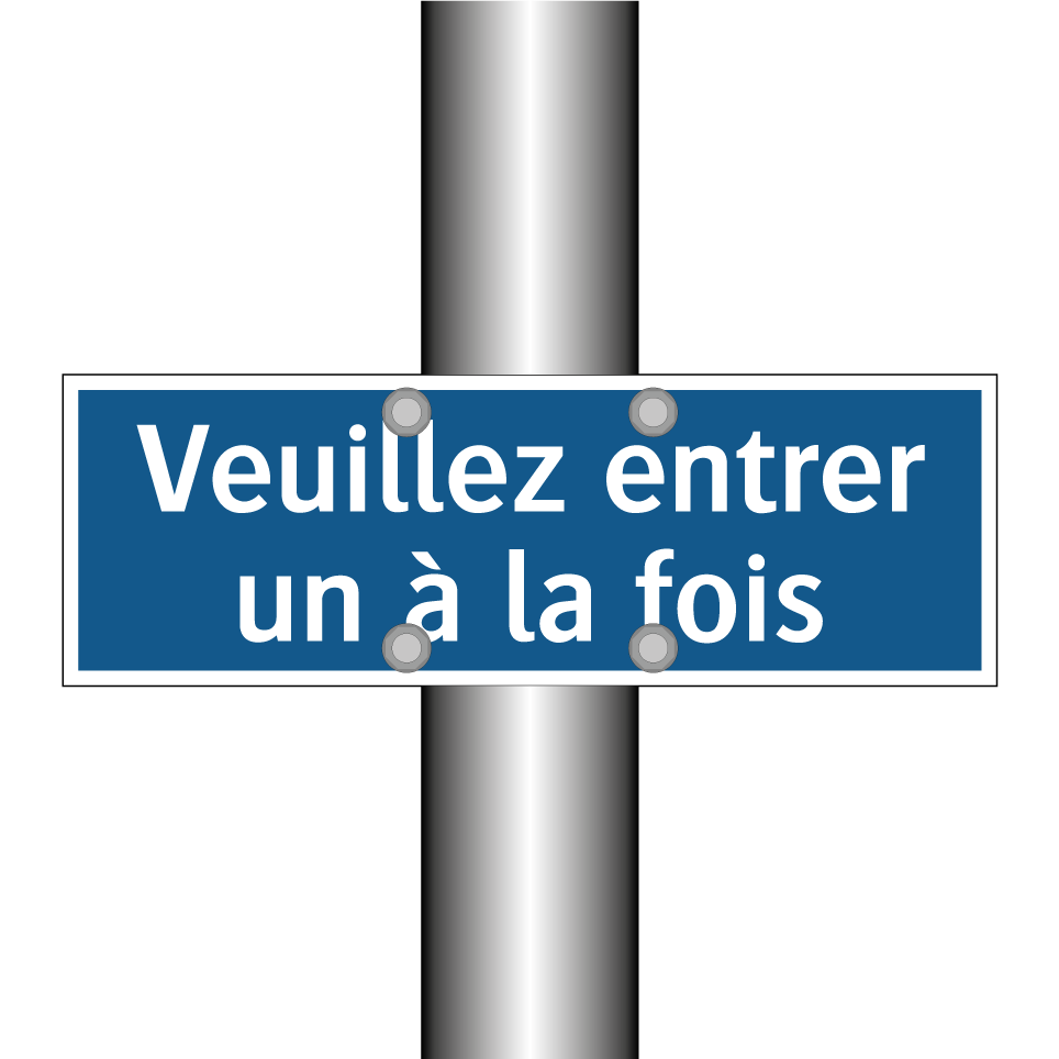 Panneau d'obligation avec le texte : "Veuillez entrer un à la fois"