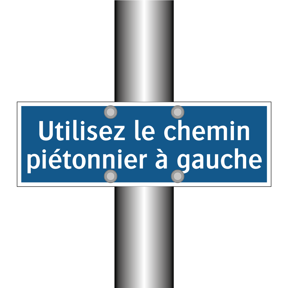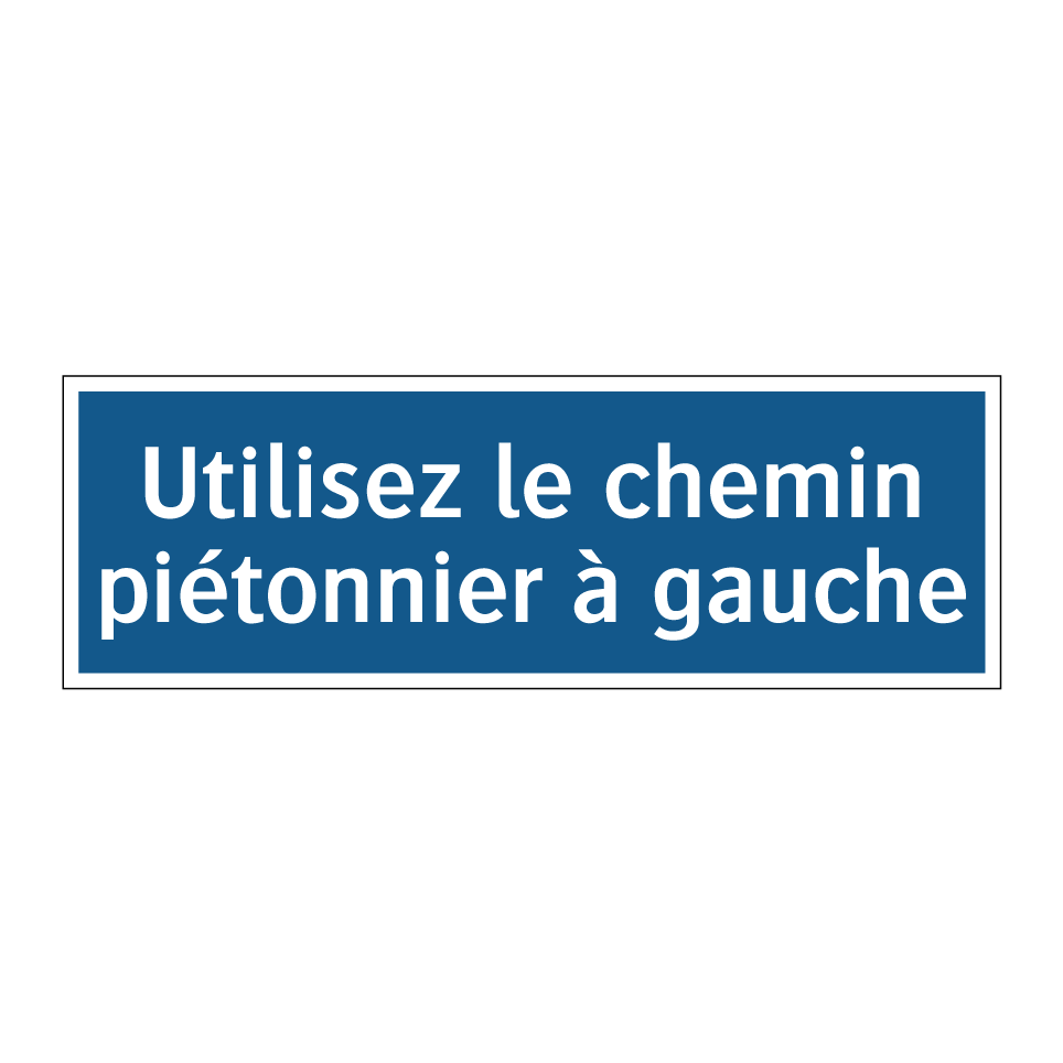 Panneau d'obligation avec le texte : "Utilisez le chemin piétonnier à gauche"
