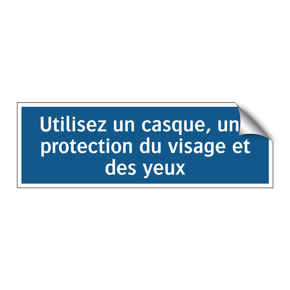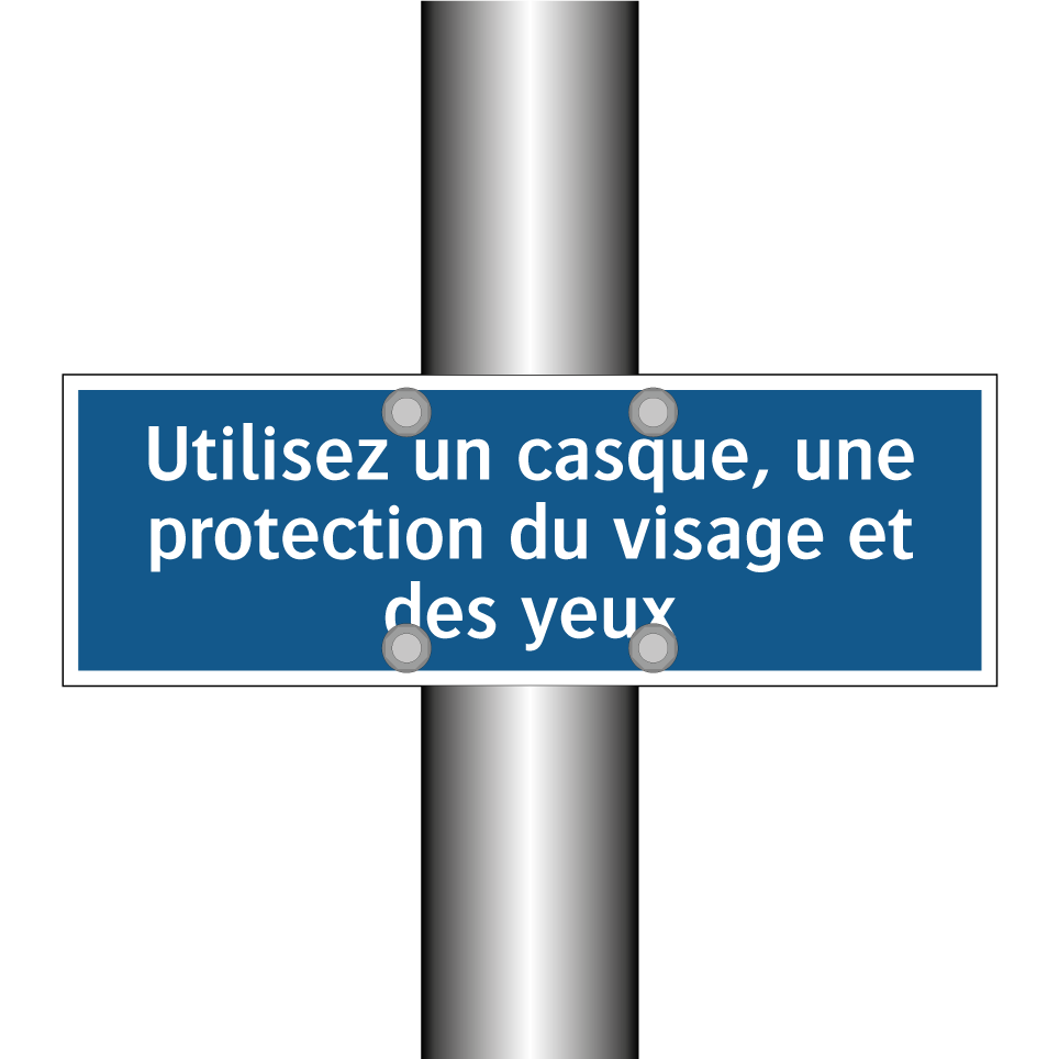 Panneau d'obligation avec le texte : "Utilisez un casque, une protection du visage et des yeux"