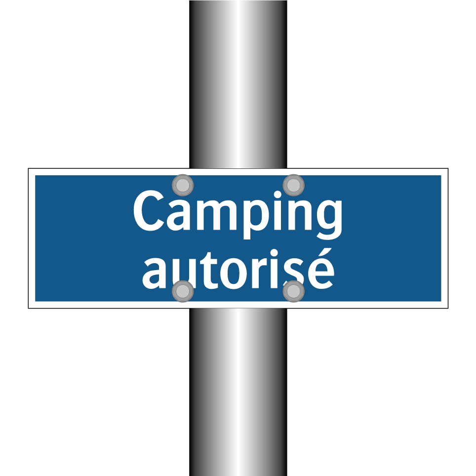 Panneau d'obligation avec le texte : "Camping autorisé"