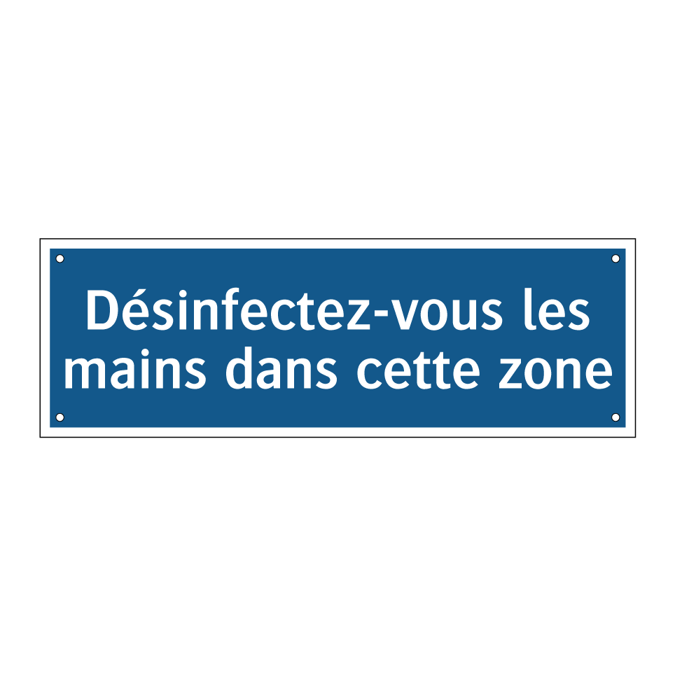 Panneau d'obligation avec le texte : "Désinfectez-vous les mains dans cette zone"