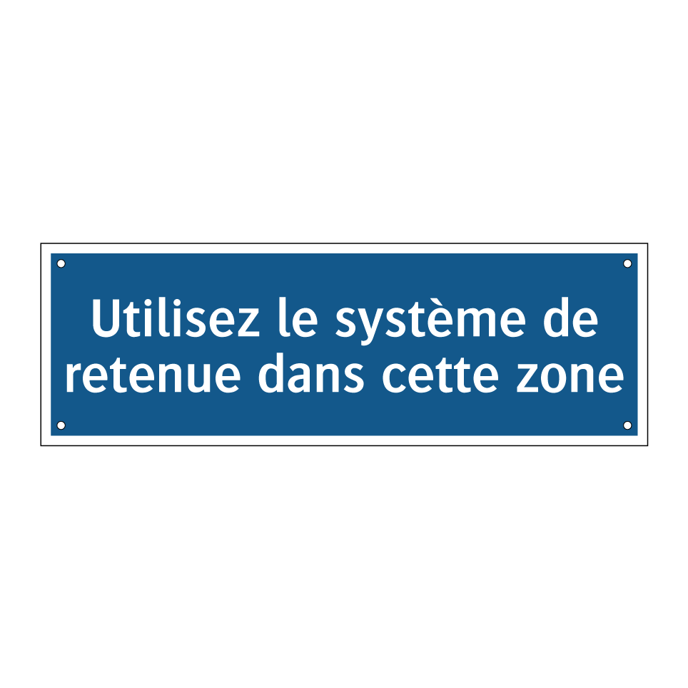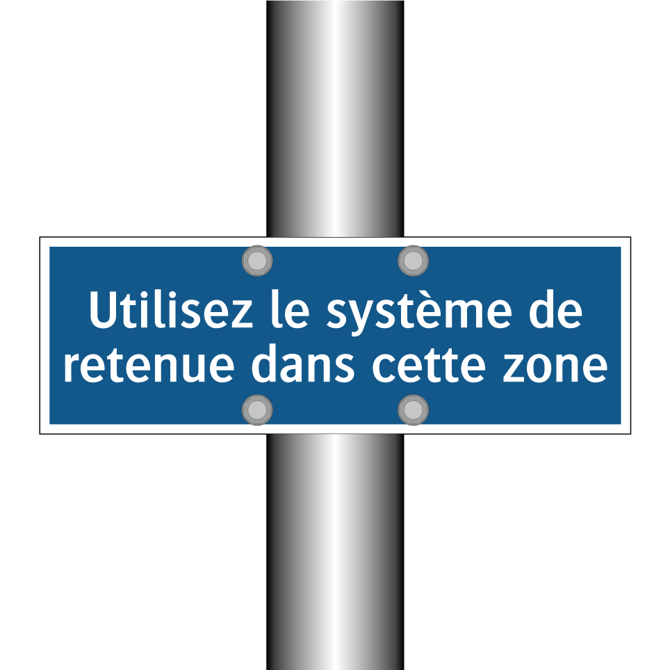 Panneau d'obligation avec le texte : "Utilisez le système de retenue dans cette zone"