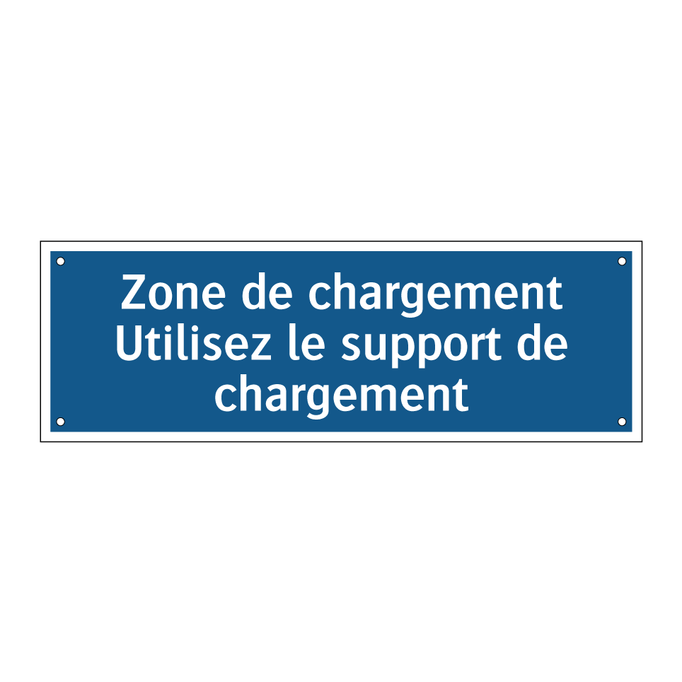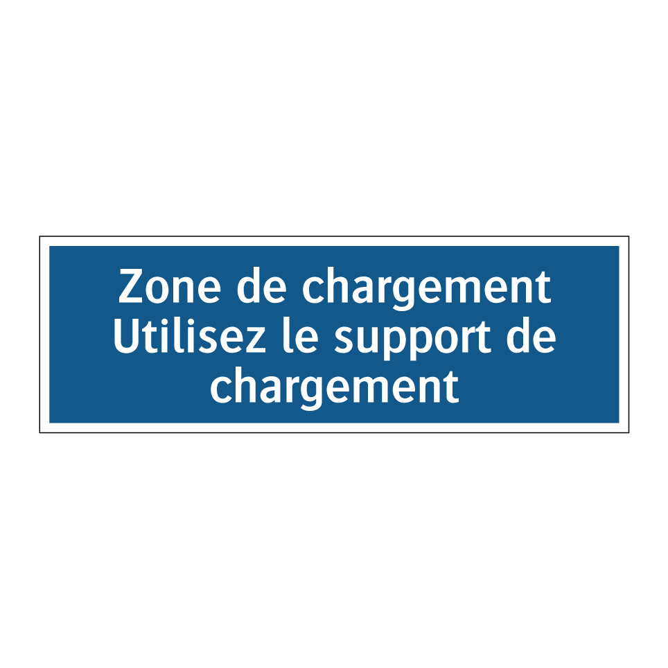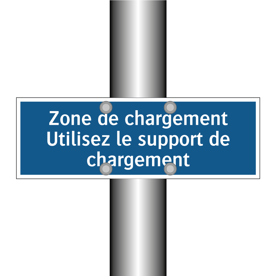 Panneau d'obligation avec le texte : "Zone de chargement Utilisez le support de chargement"