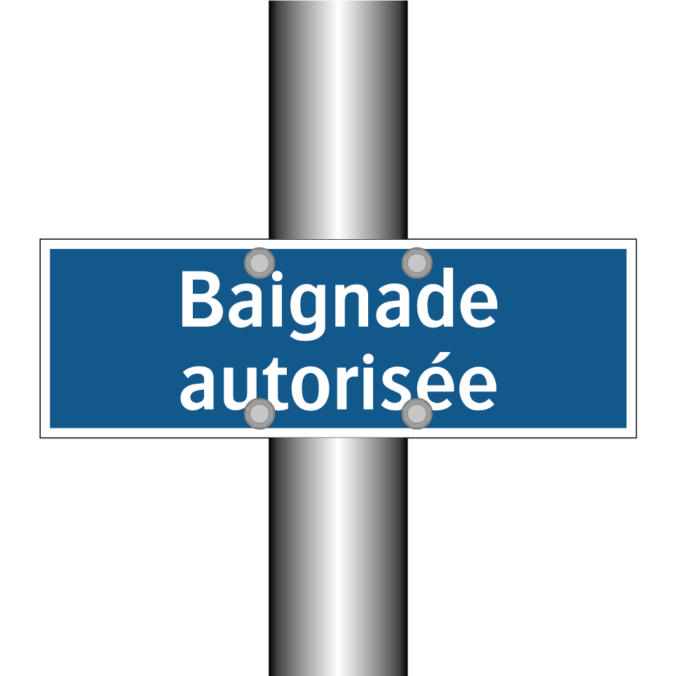 Panneau d'obligation avec le texte : "Baignade autorisée"