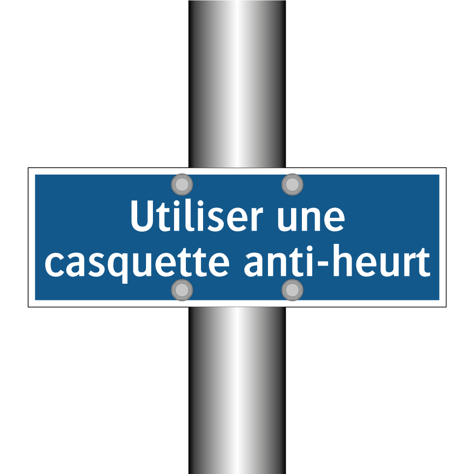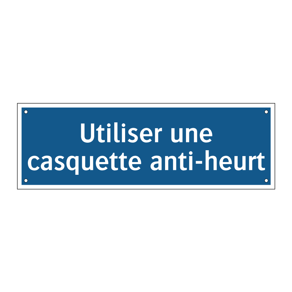 Panneau d'obligation avec le texte : "Utiliser une casquette anti-heurt"