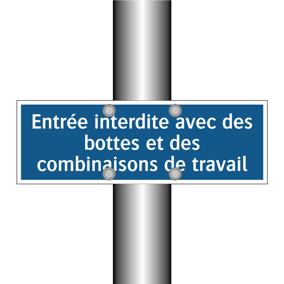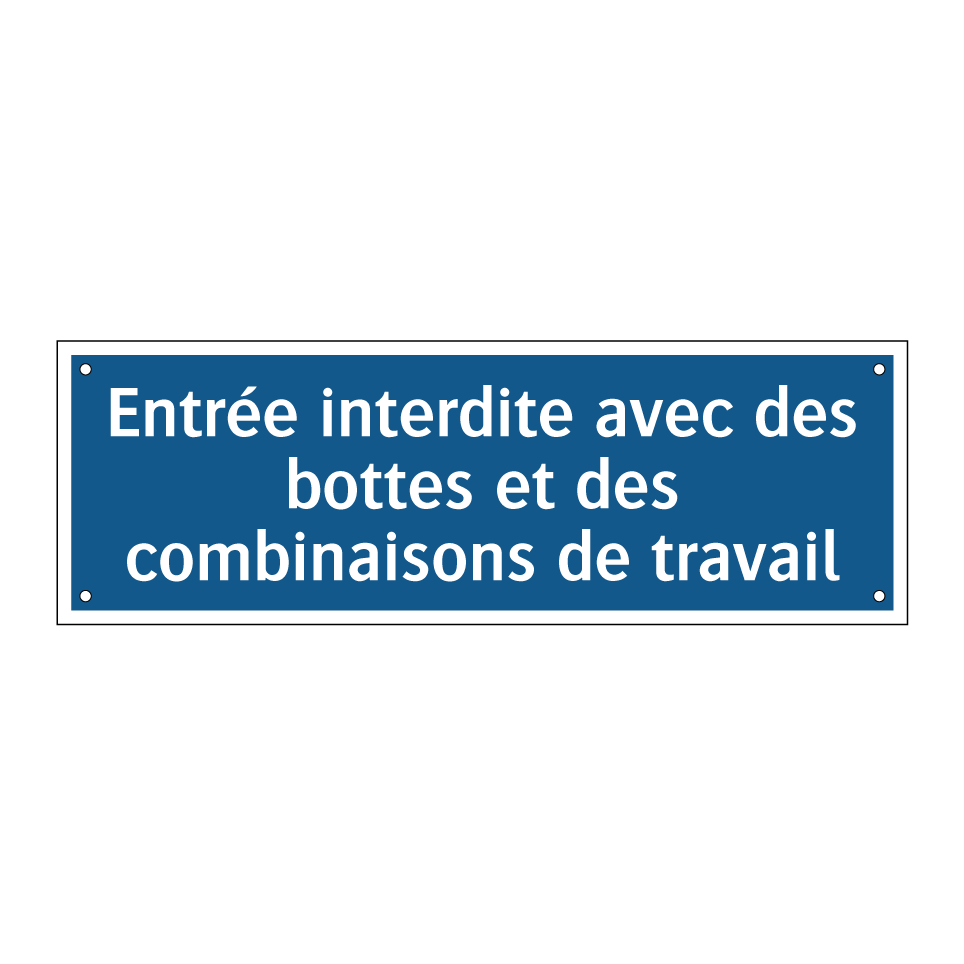 Panneau d'obligation avec le texte : "Entrée interdite avec des bottes et des combinaisons de travail"