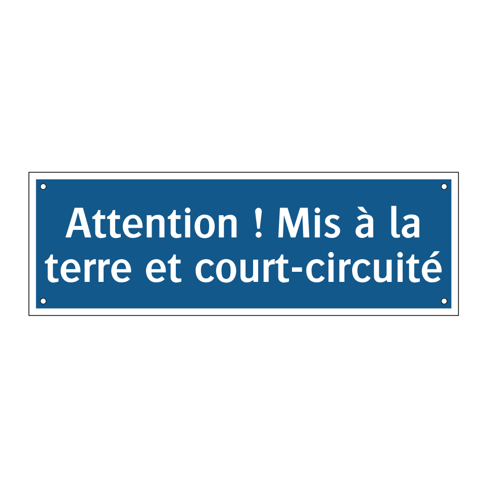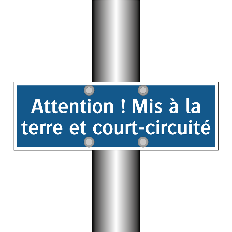 Panneau d'obligation avec le texte : "Attention ! Mis à la terre et court-circuité"