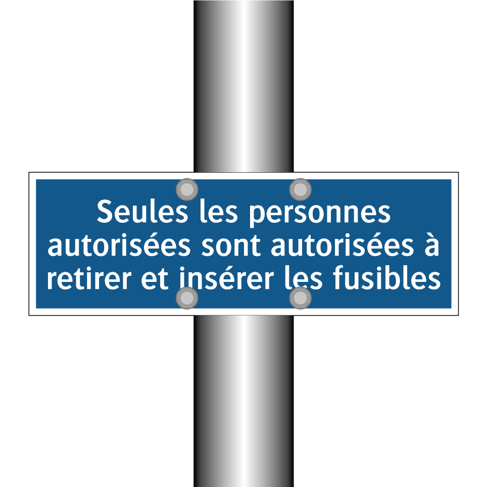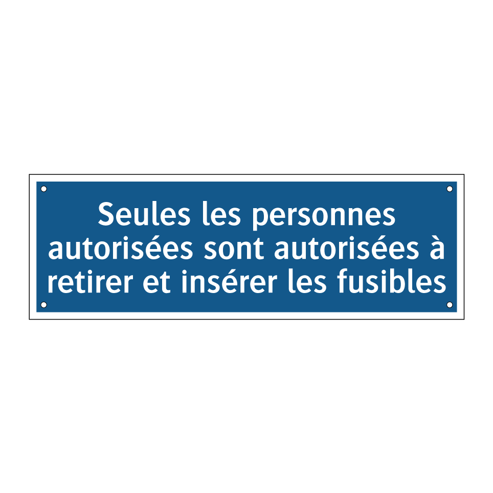 Panneau d'obligation avec le texte : "Seules les personnes autorisées sont autorisées à retirer et insérer les fusibles"