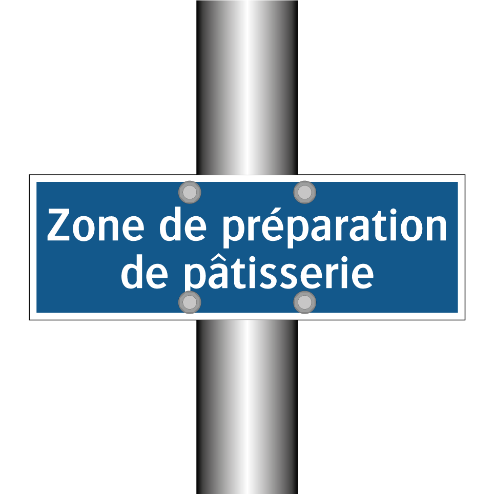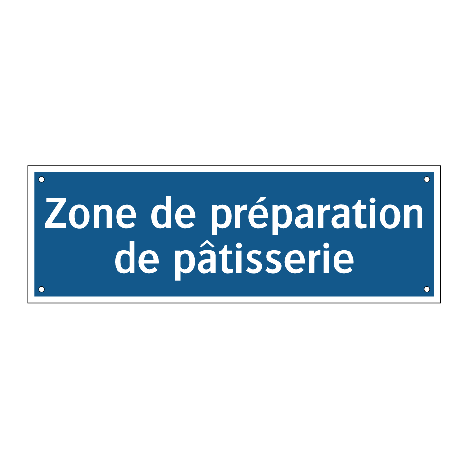 Panneau d'obligation avec le texte : "Zone de préparation de pâtisserie"