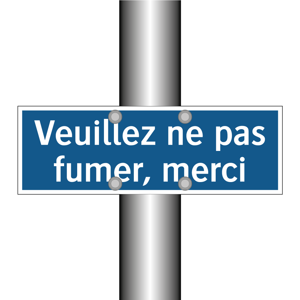 Panneau d'obligation avec le texte : "Veuillez ne pas fumer, merci"