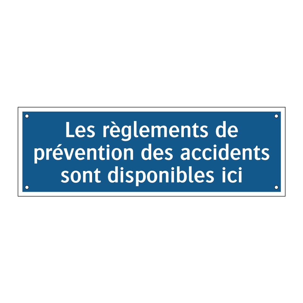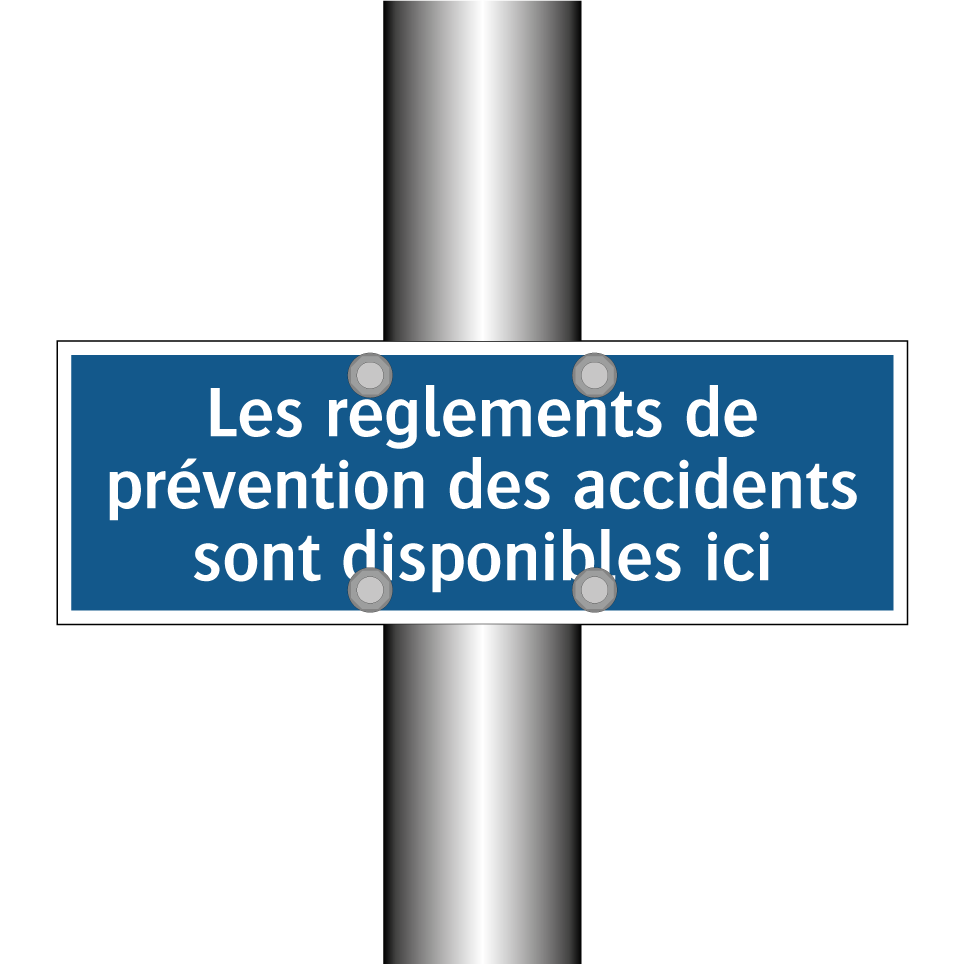 Panneau d'obligation avec le texte : "Les règlements de prévention des accidents sont disponibles ici"