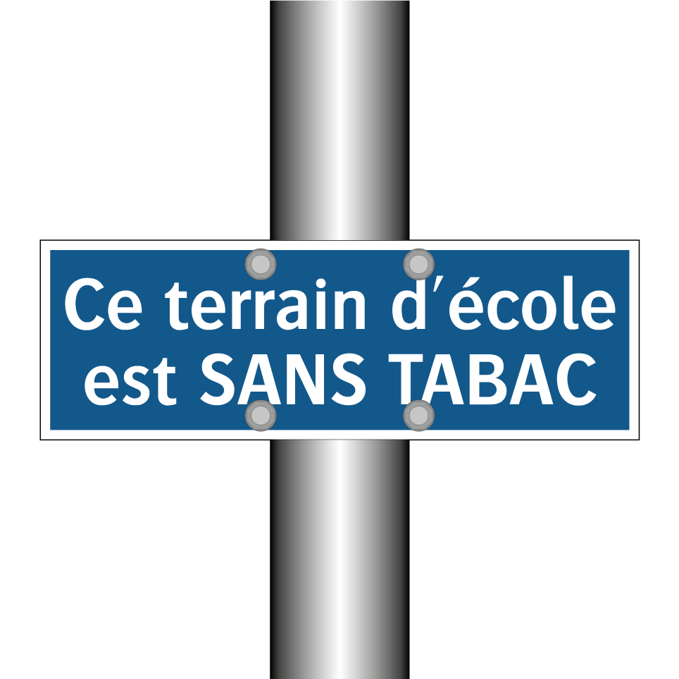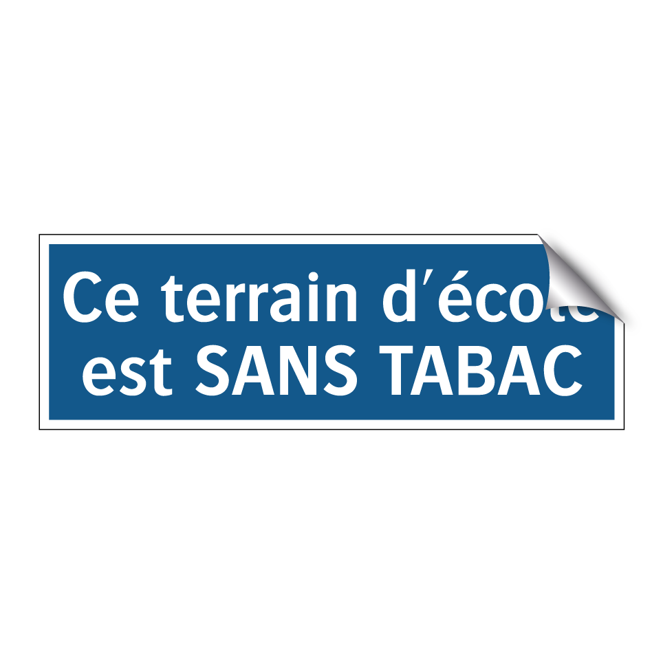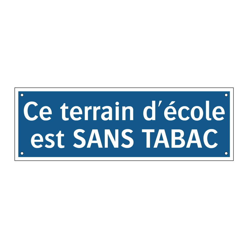 Panneau d'obligation avec le texte : "Ce terrain d'école est SANS TABAC"