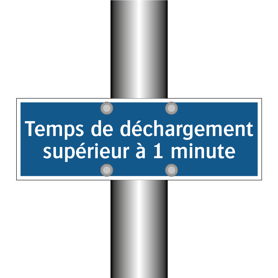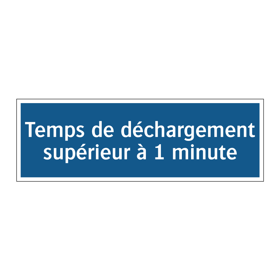 Panneau d'obligation avec le texte : "Temps de déchargement supérieur à 1 minute"