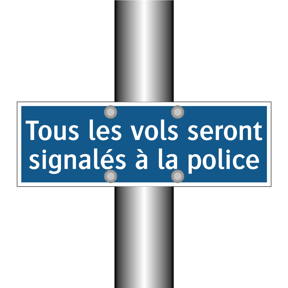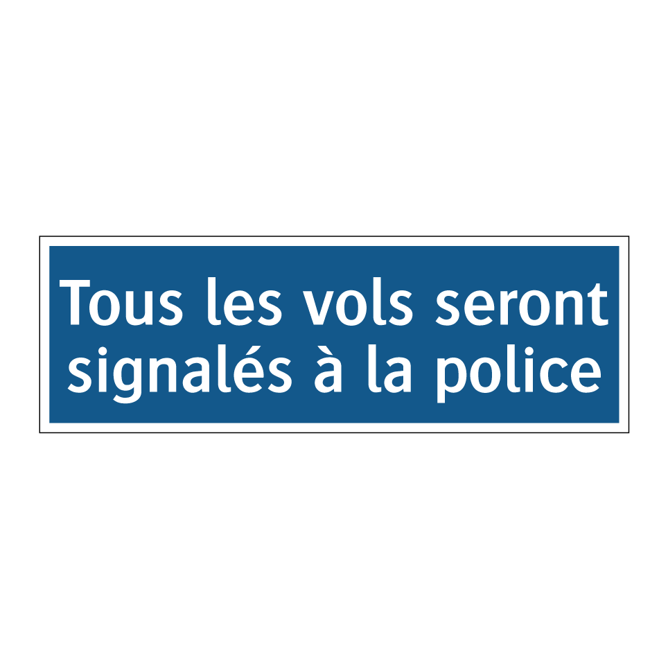 Panneau d'obligation avec le texte : "Tous les vols seront signalés à la police"