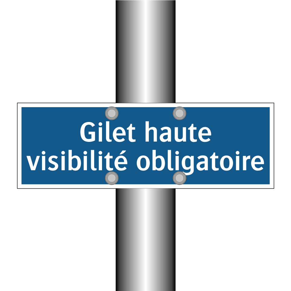 Panneau d'obligation avec le texte : "Gilet haute visibilité obligatoire"