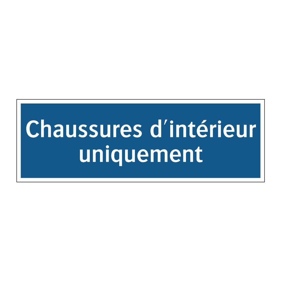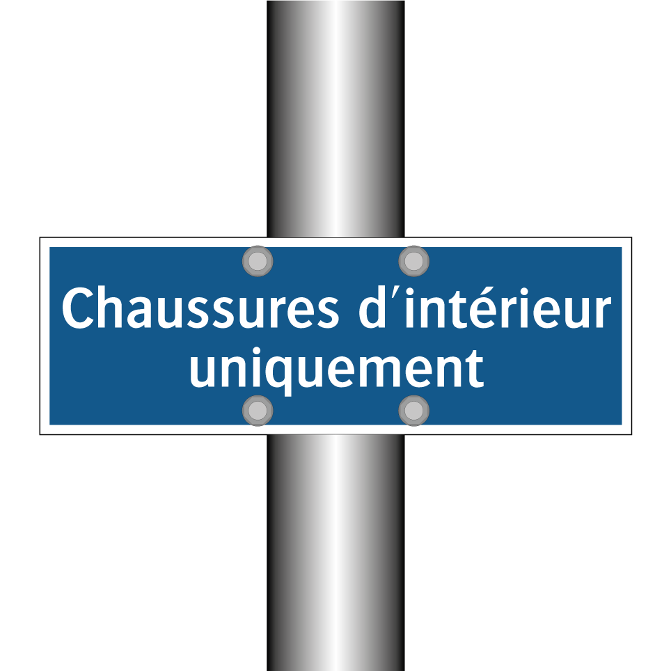 Panneau d'obligation avec le texte : "Chaussures d'intérieur uniquement"