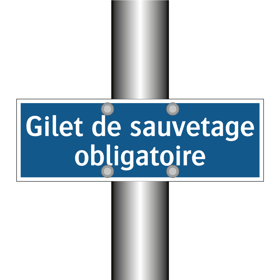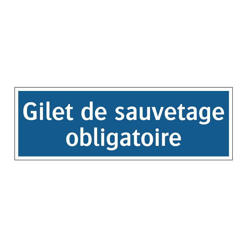 Panneau d'obligation avec le texte : "Gilet de sauvetage obligatoire"