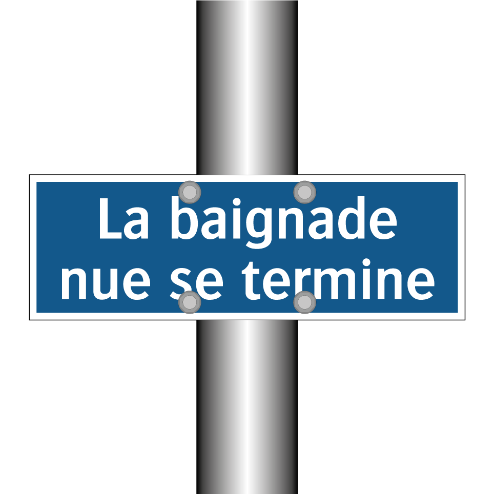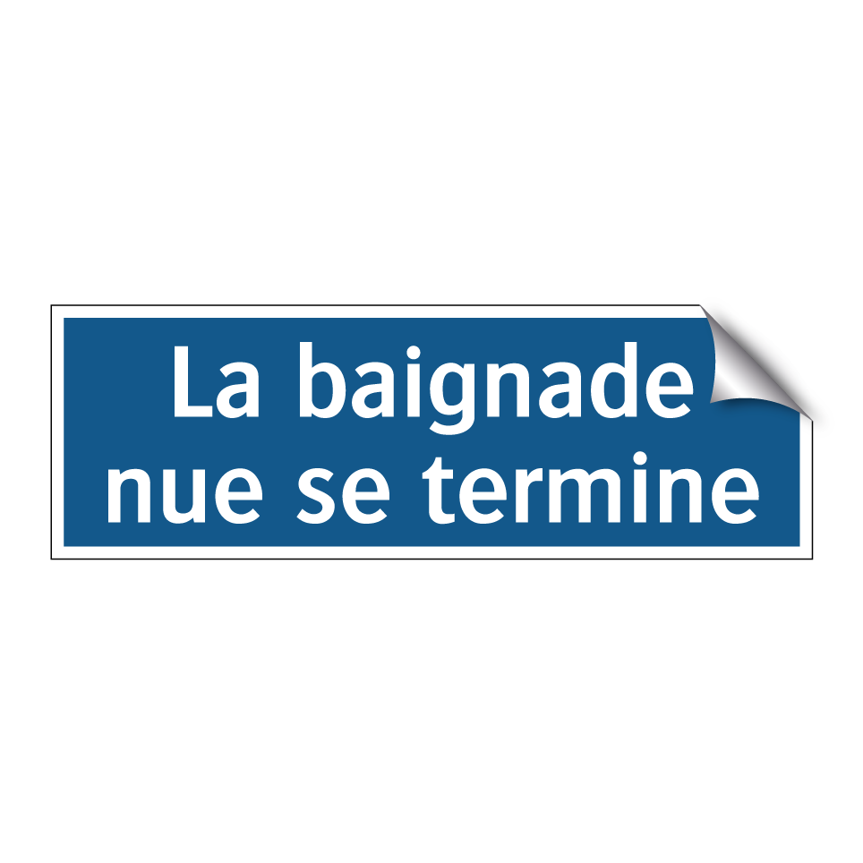Panneau d'obligation avec le texte : "La baignade nue se termine"