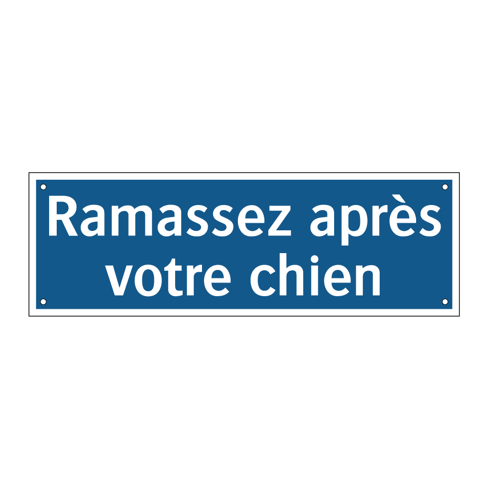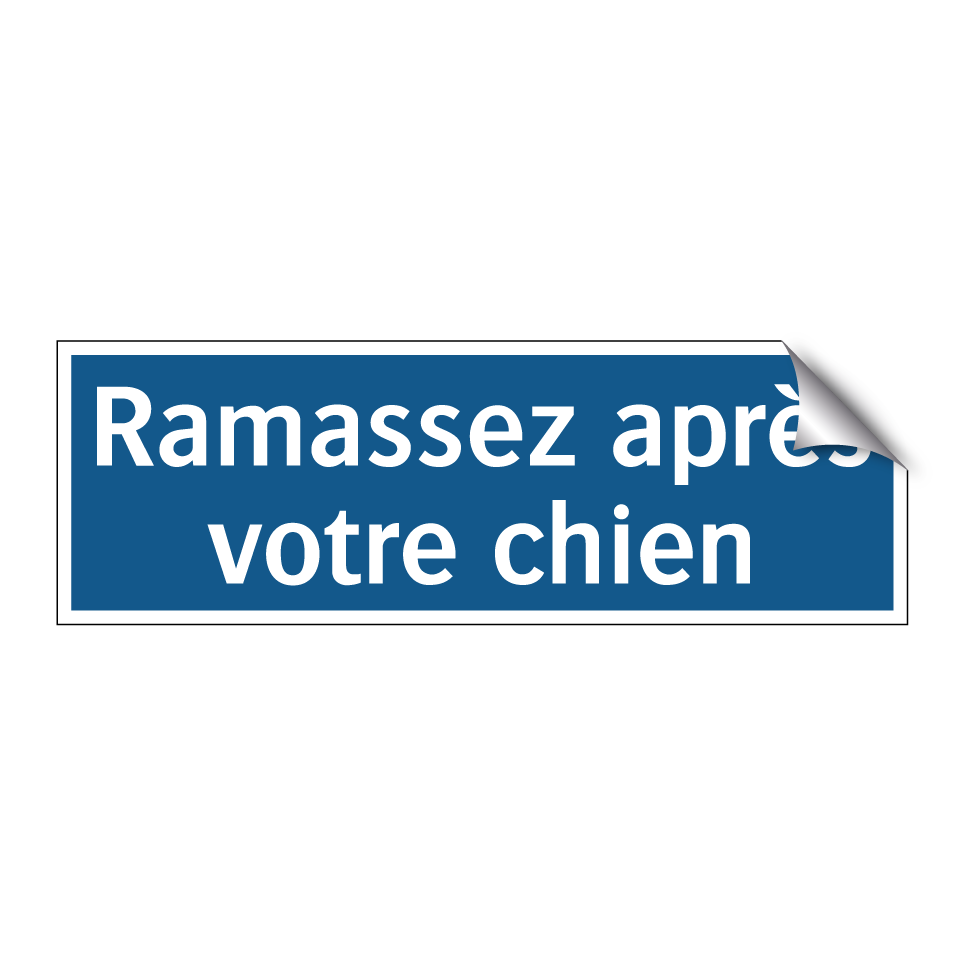 Panneau d'obligation avec le texte : "Ramassez après votre chien"