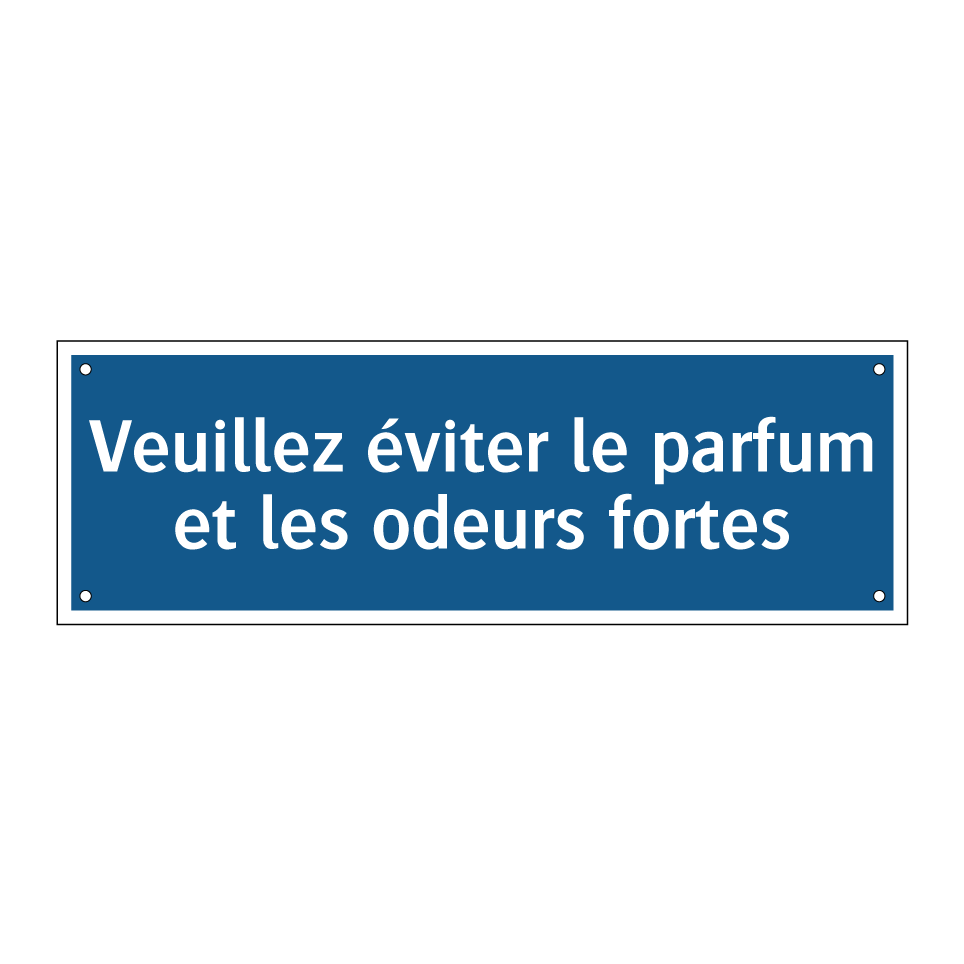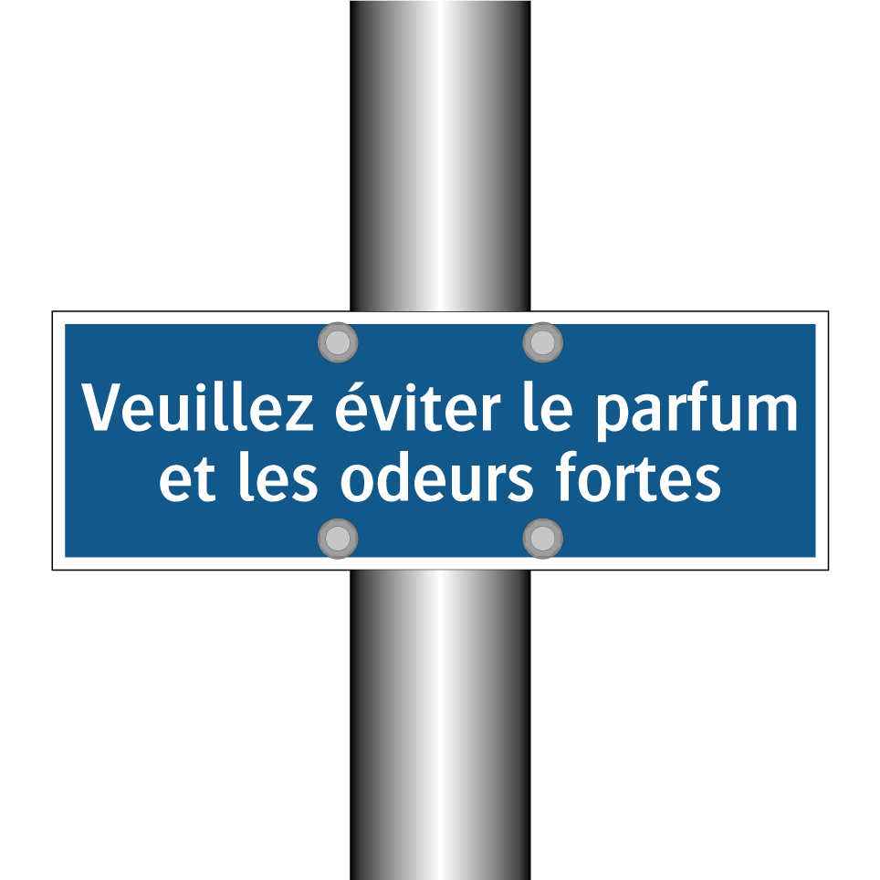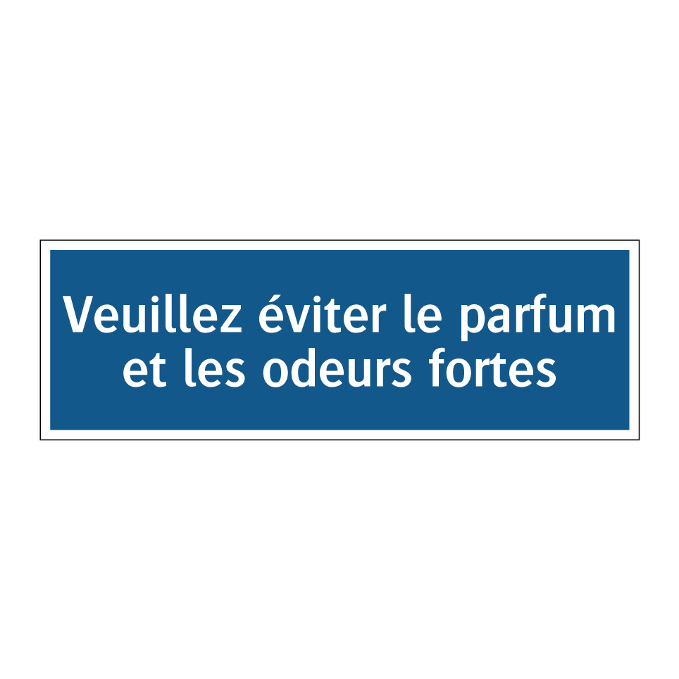 Panneau d'obligation avec le texte : "Veuillez éviter le parfum et les odeurs fortes"