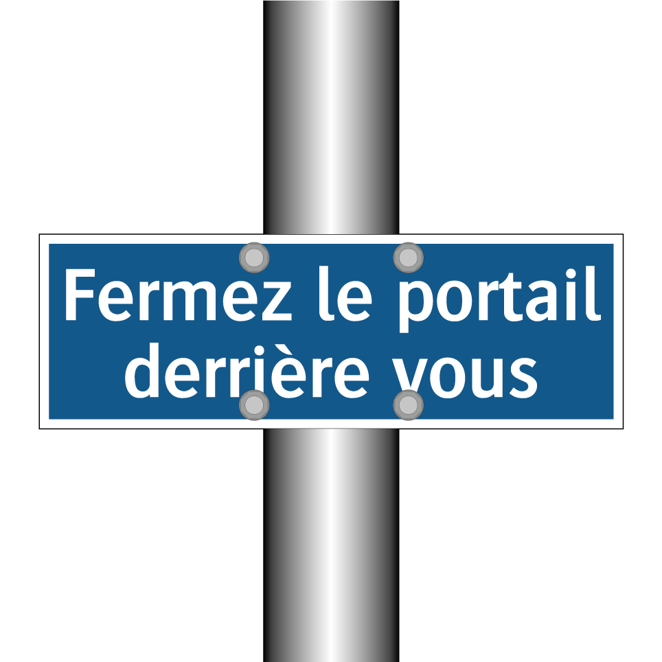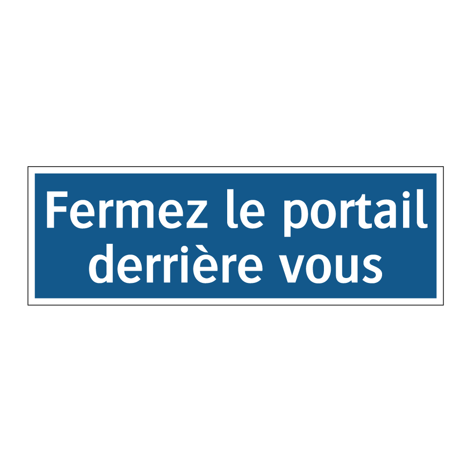 Panneau d'obligation avec le texte : "Fermez le portail derrière vous"