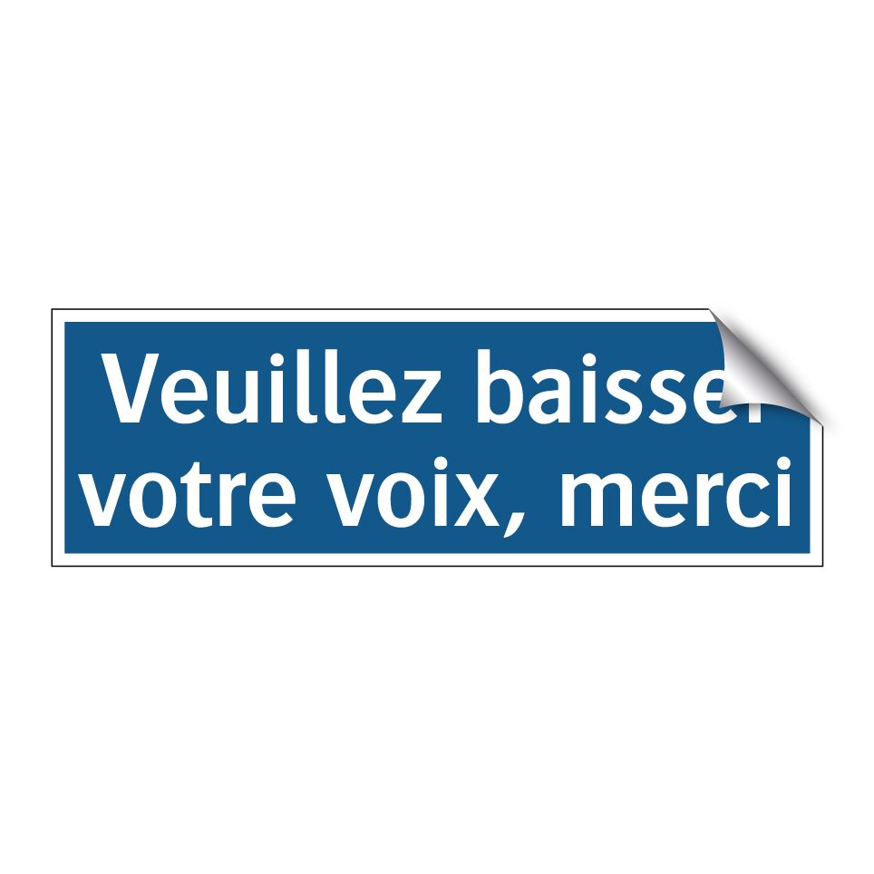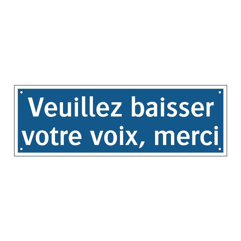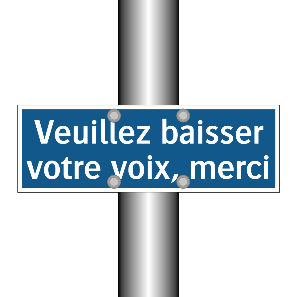 Panneau d'obligation avec le texte : "Veuillez baisser votre voix, merci"
