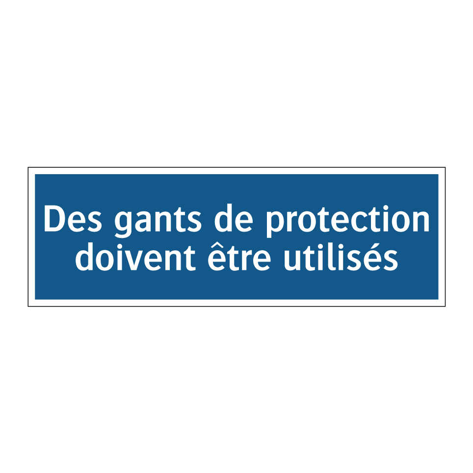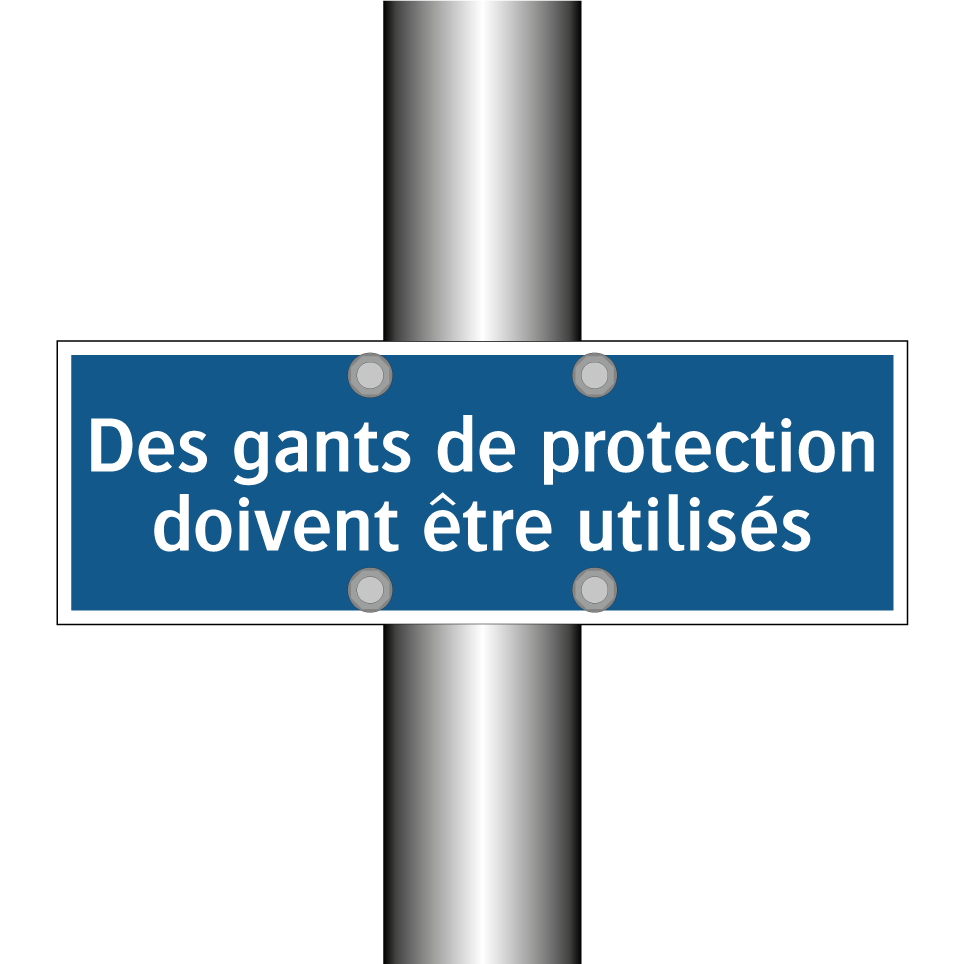 Panneau d'obligation avec le texte : "Des gants de protection doivent être utilisés"