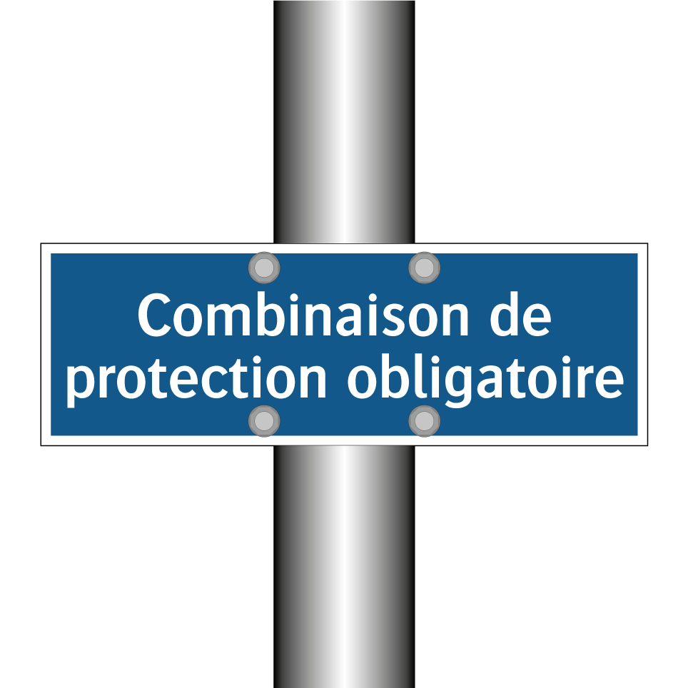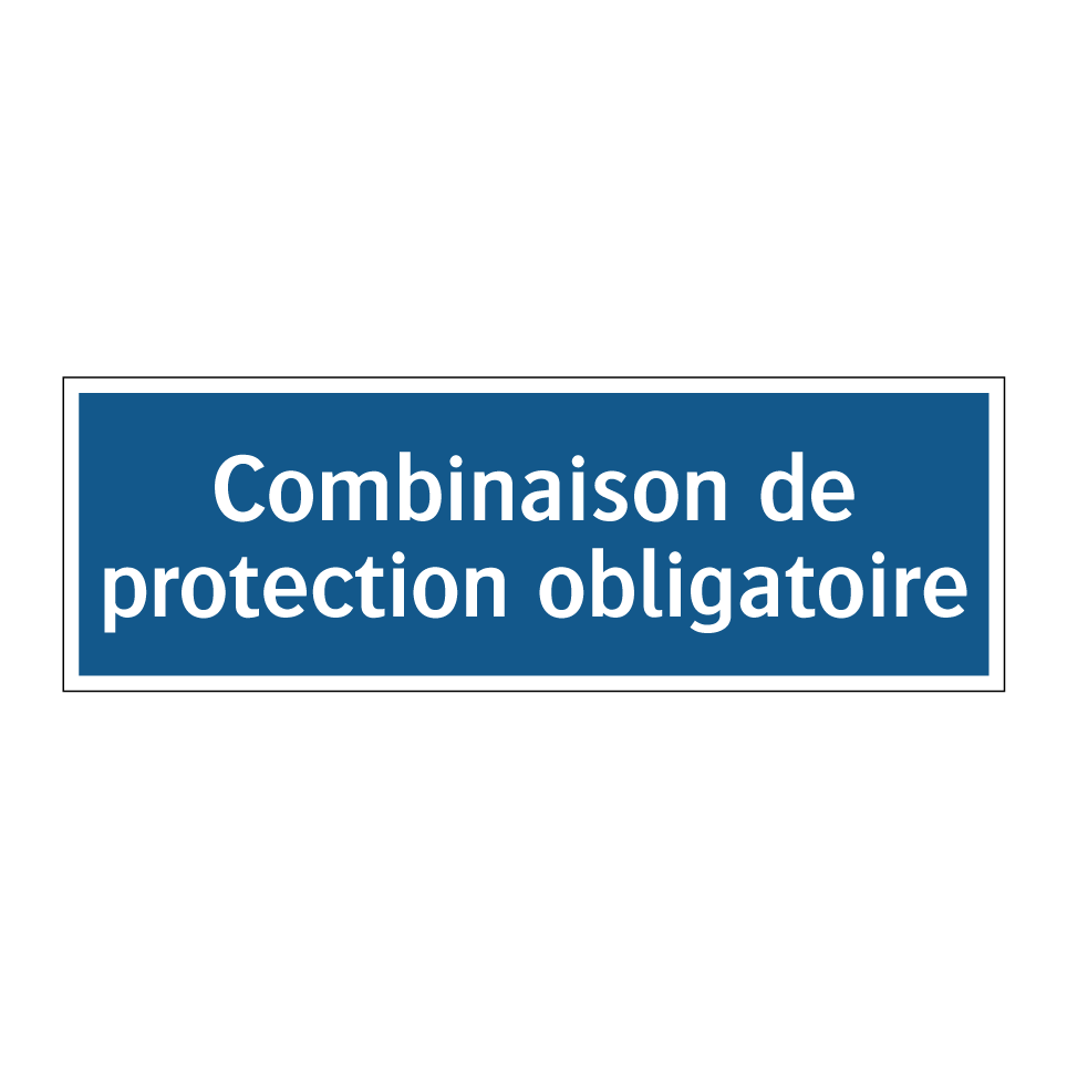 Panneau d'obligation avec le texte : "Combinaison de protection obligatoire"