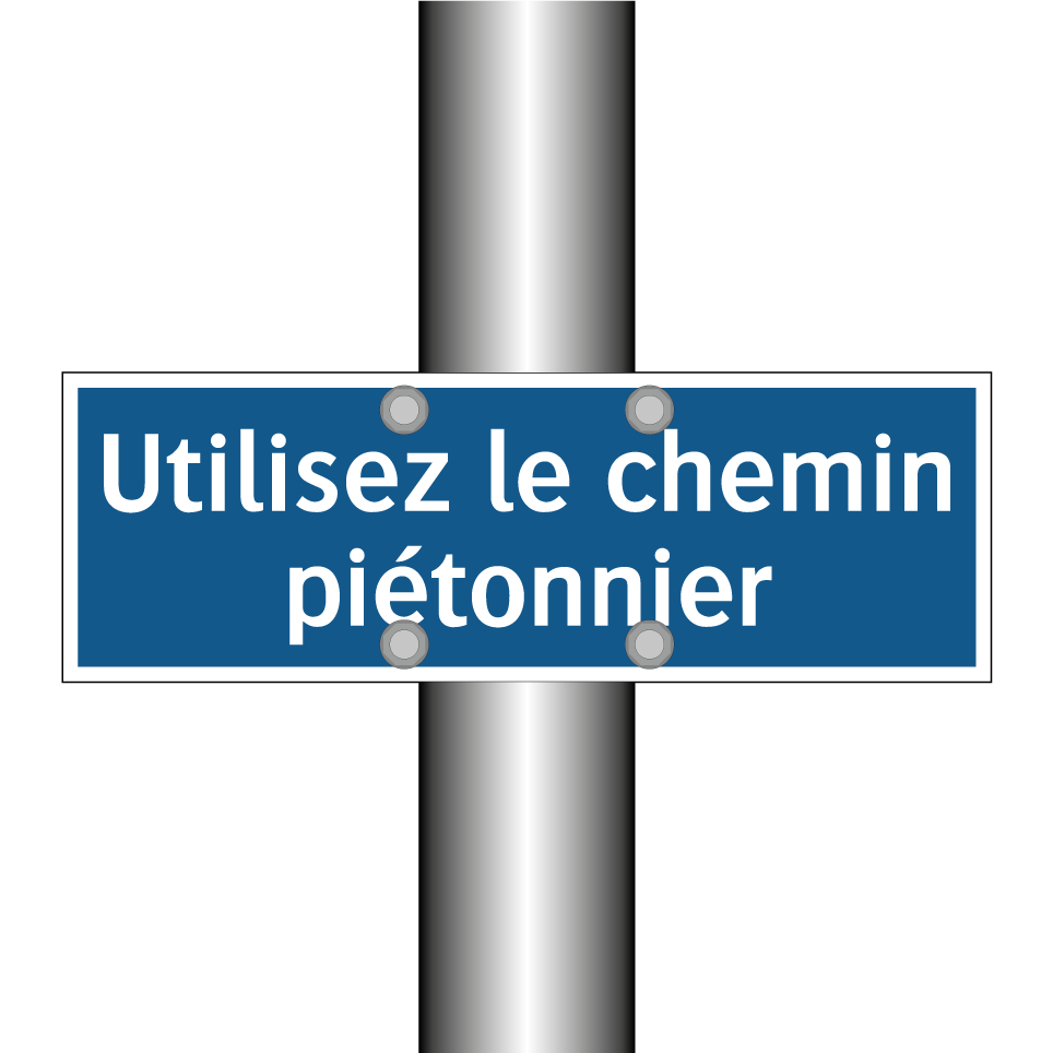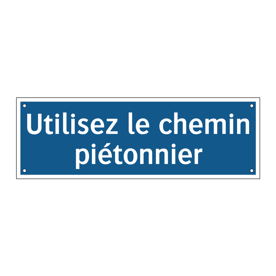 Panneau d'obligation avec le texte : "Utilisez le chemin piétonnier"