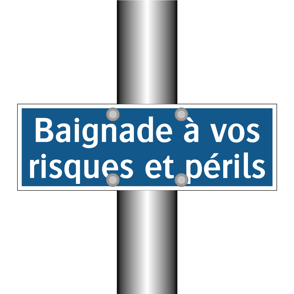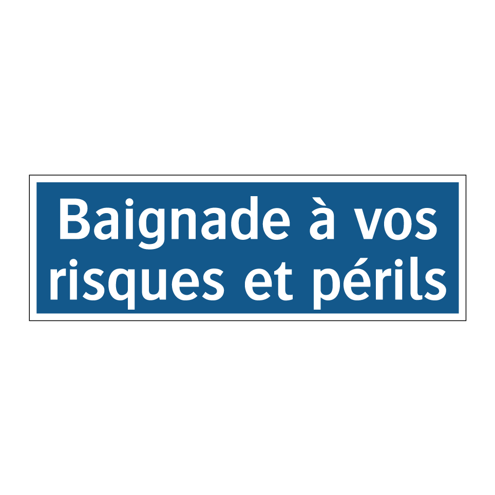 Panneau d'obligation avec le texte : "Baignade à vos risques et périls"