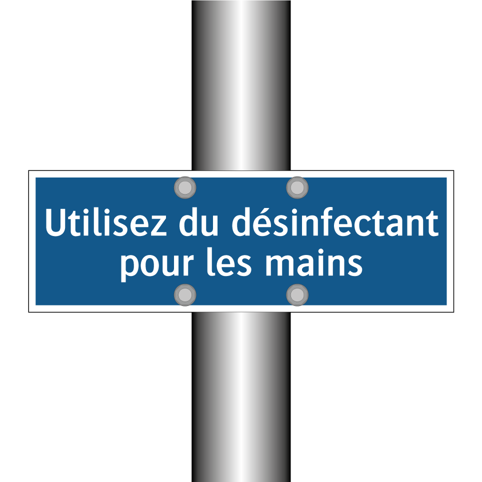 Ce panneau d'obligation est essentiel pour garantir l'hygiène dans les espaces publics et privés. Il rappelle aux individus l'importance de maintenir une bonne hygiène des mains en utilisant un désinfectant. Ce type de signalisation est idéal pour être placé à l'entrée des bâtiments, dans les bureaux, les écoles, les hôpitaux, et tout autre lieu où l'hygiène est primordiale. En installant ce panneau, vous contribuez à la prévention des infections et à la promotion de la santé publique. Sa couleur bleue et son texte blanc attirent l'attention, assurant que le message est bien visible et compris par tous.