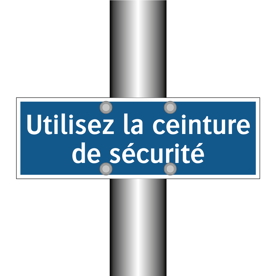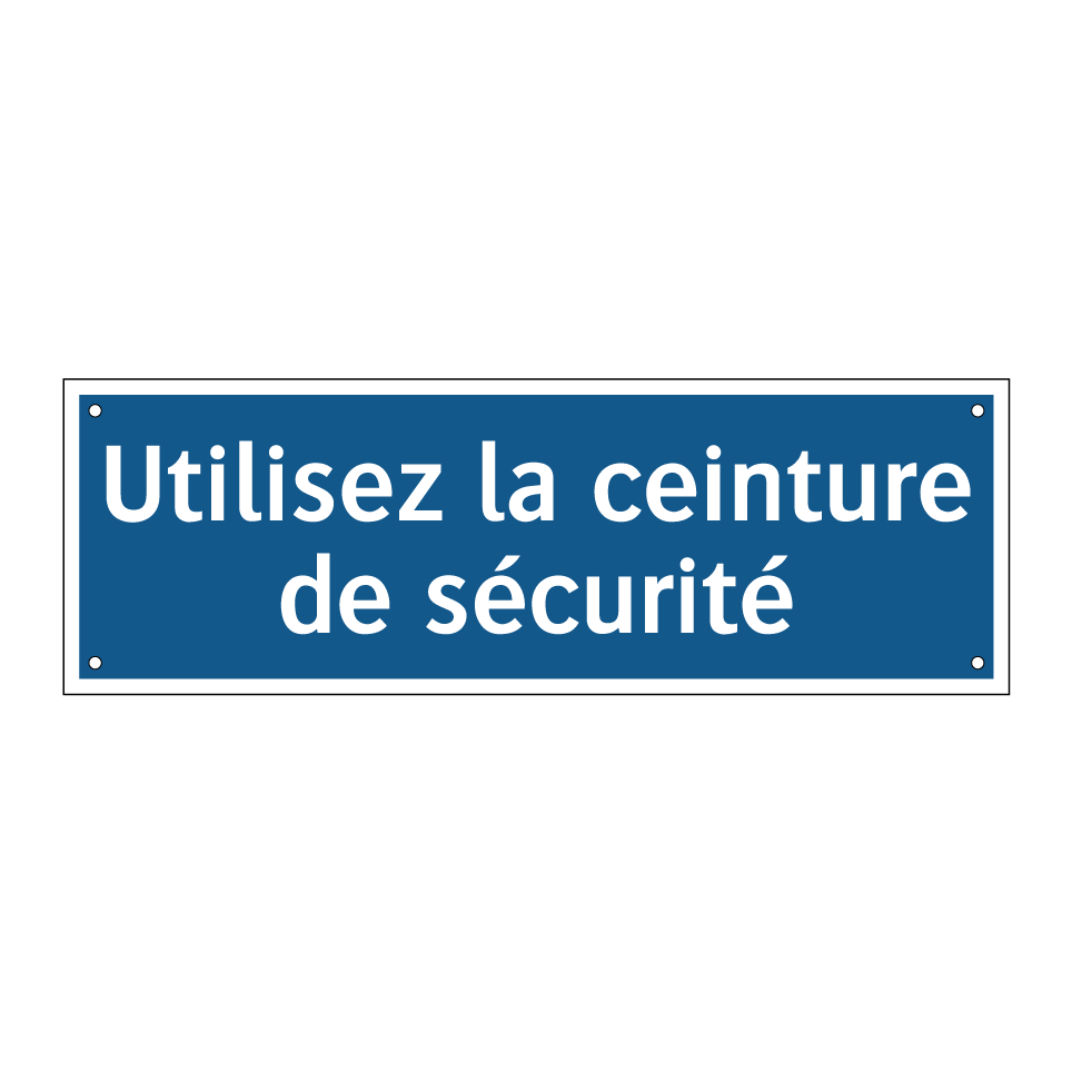 Panneau d'obligation avec le texte : "Utilisez la ceinture de sécurité"