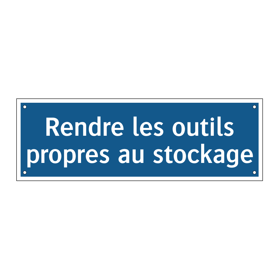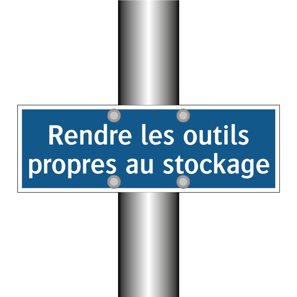 Panneau d'obligation avec le texte : "Rendre les outils propres au stockage"