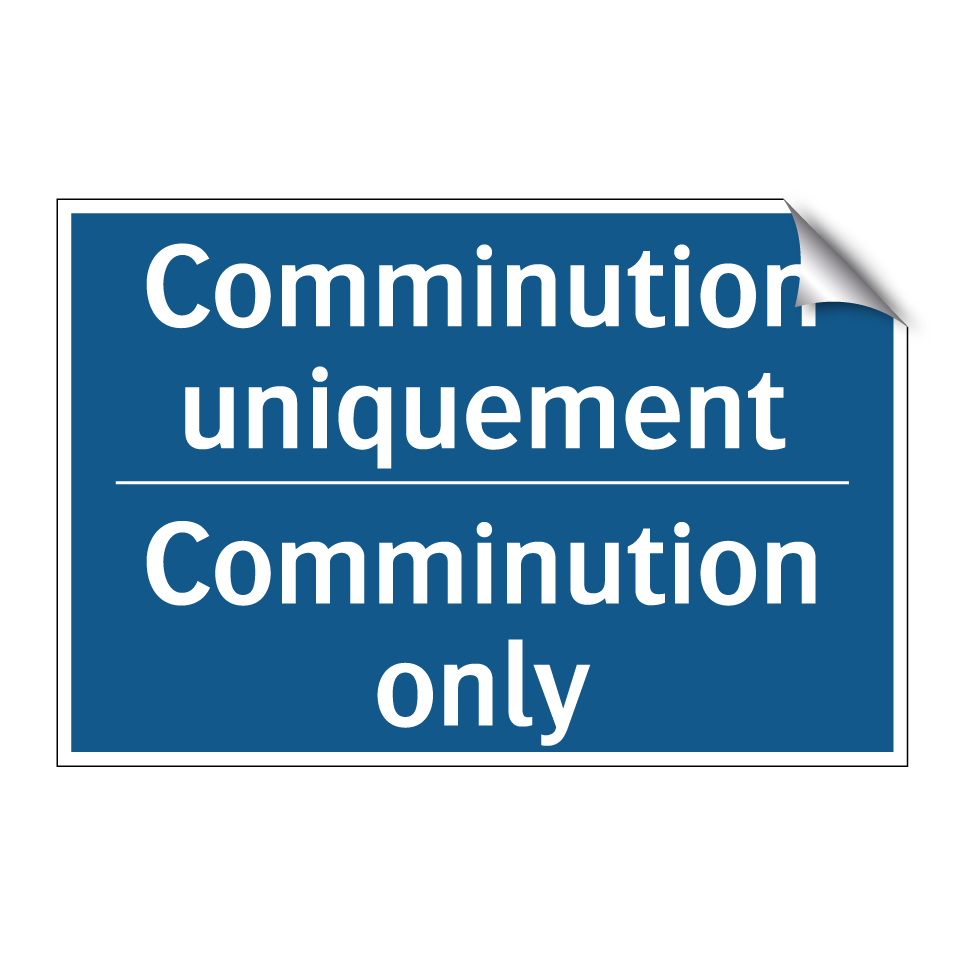 Panneau d'obligation bilingue avec texte en français : "Comminution uniquement", et en anglais : "Comminution only"