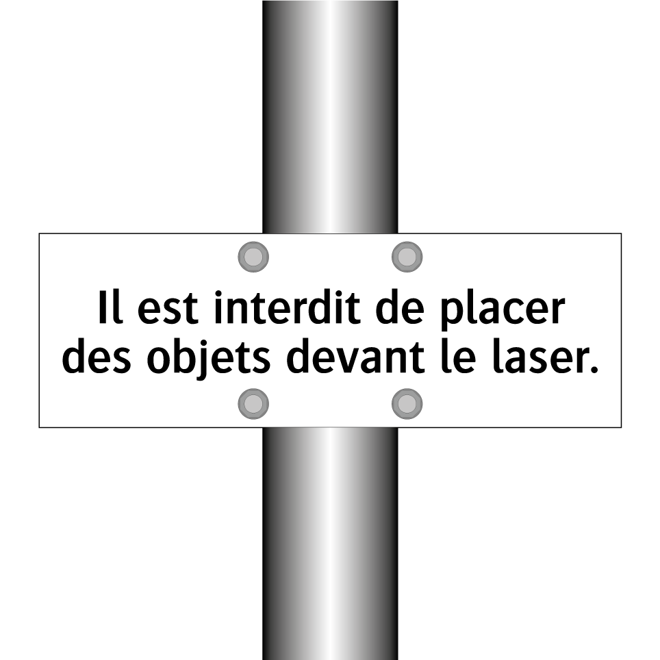 Panneau d'interdiction avec le texte : "Il est interdit de placer des objets devant le laser."