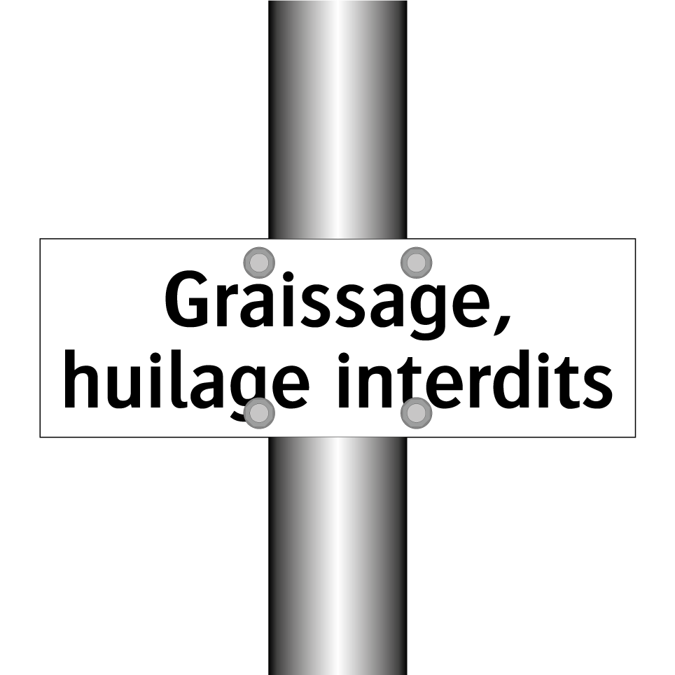 Panneau d'interdiction avec le texte : "Graissage, huilage interdits"