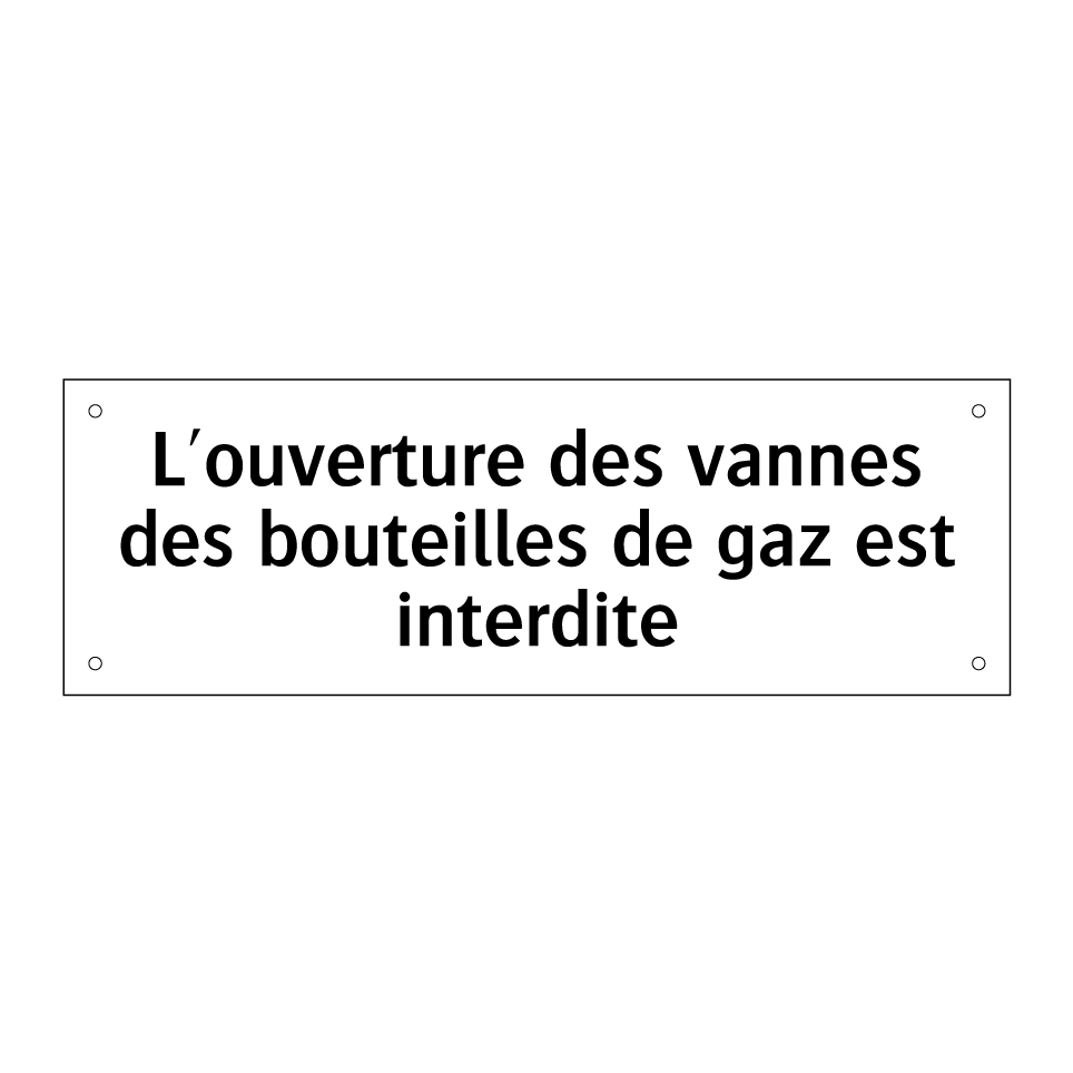 Panneau d'interdiction avec le texte : "L'ouverture des vannes des bouteilles de gaz est interdite"