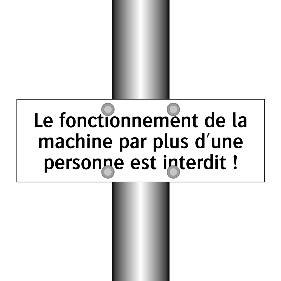 Panneau d'interdiction avec le texte : "Le fonctionnement de la machine par plus d'une personne est interdit !"