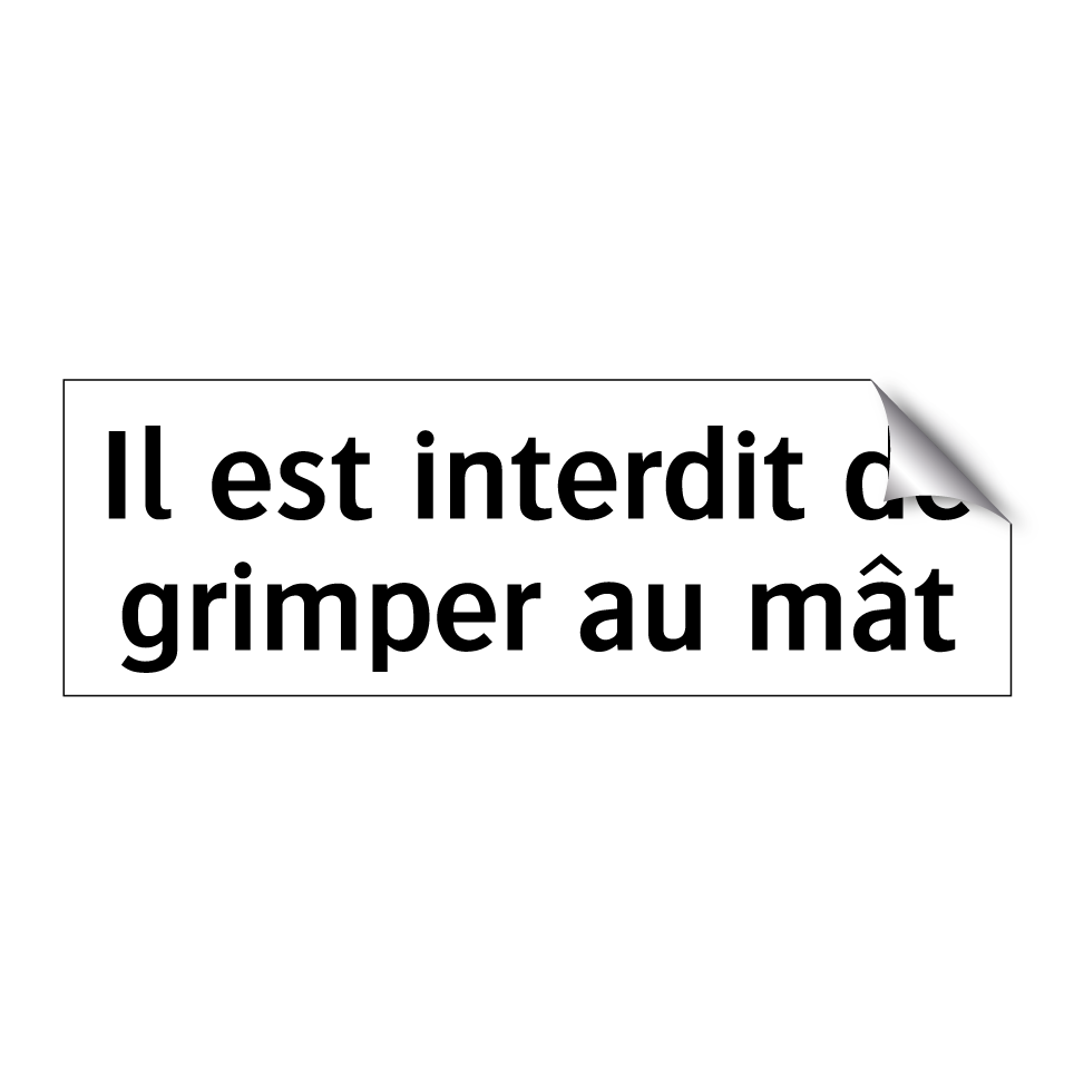Panneau d'interdiction avec le texte : "Il est interdit de grimper au mât"