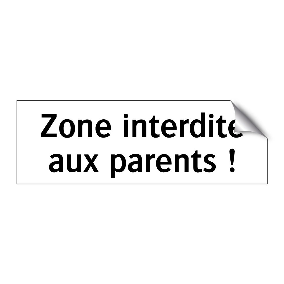 Panneau d'interdiction avec le texte : "Zone interdite aux parents !"