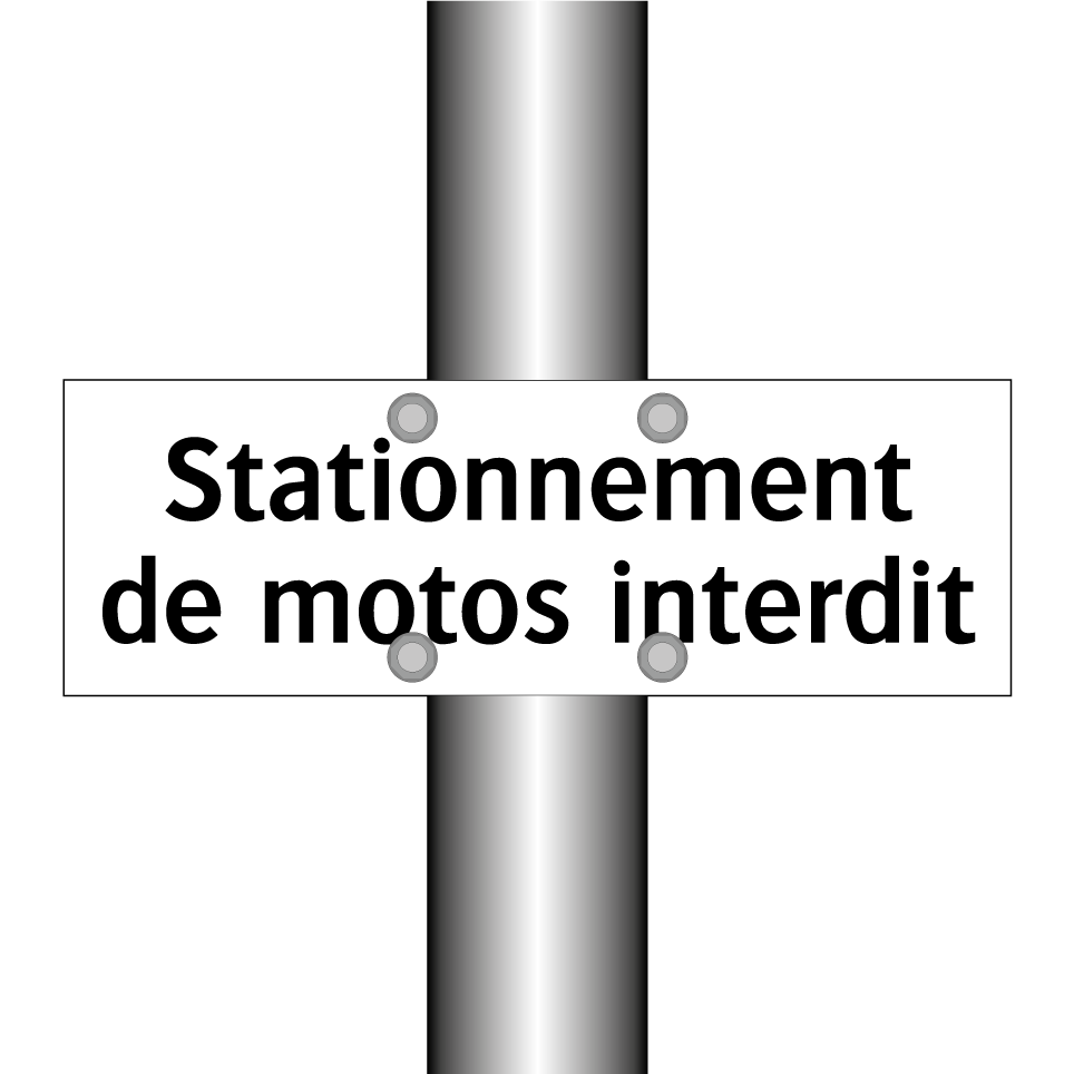 Panneau d'interdiction avec le texte : "Stationnement de motos interdit"