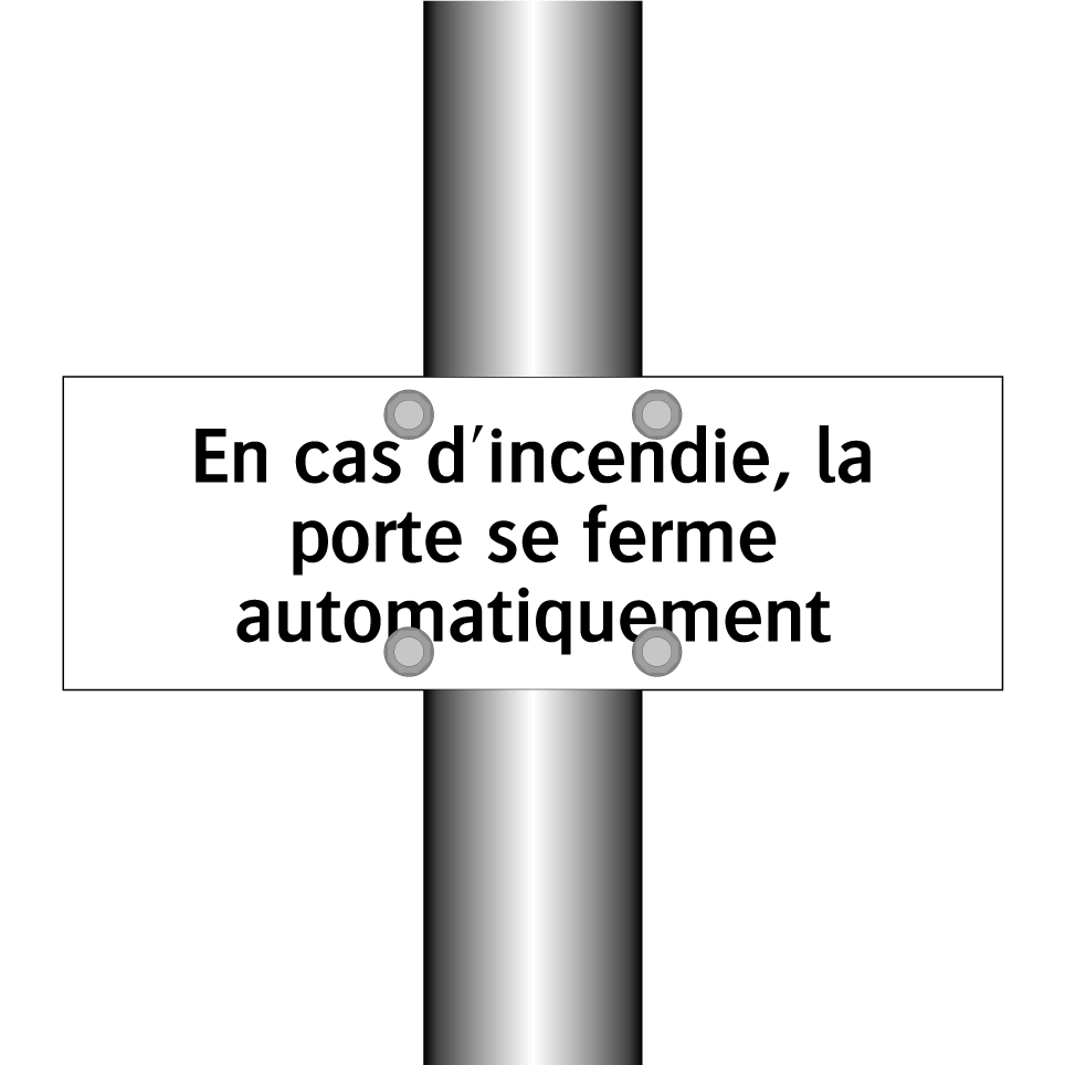 Panneau d'interdiction avec le texte : "En cas d'incendie, la porte se ferme automatiquement"