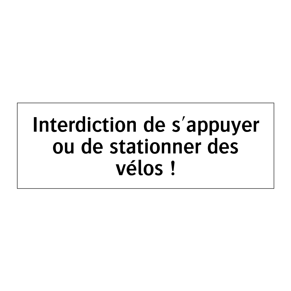 Panneau d'interdiction avec le texte : "Interdiction de s'appuyer ou de stationner des vélos !"