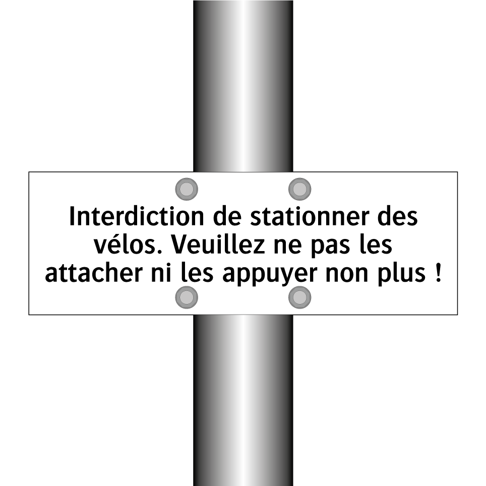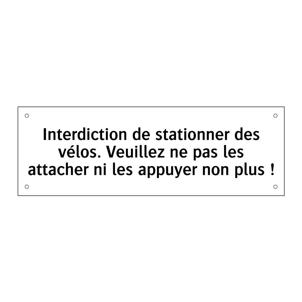 Panneau d'interdiction avec le texte : "Interdiction de stationner des vélos. Veuillez ne pas les attacher ni les appuyer non plus !"