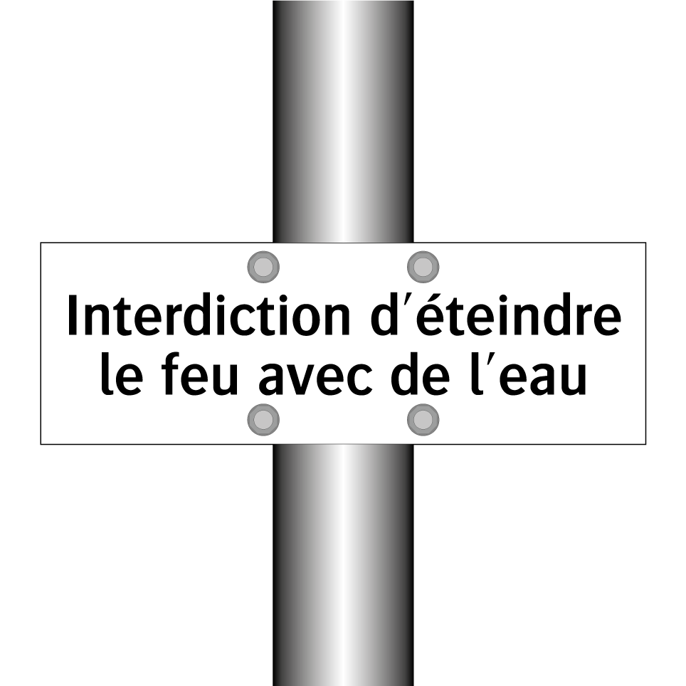 Panneau d'interdiction avec le texte : "Interdiction d'éteindre le feu avec de l'eau"