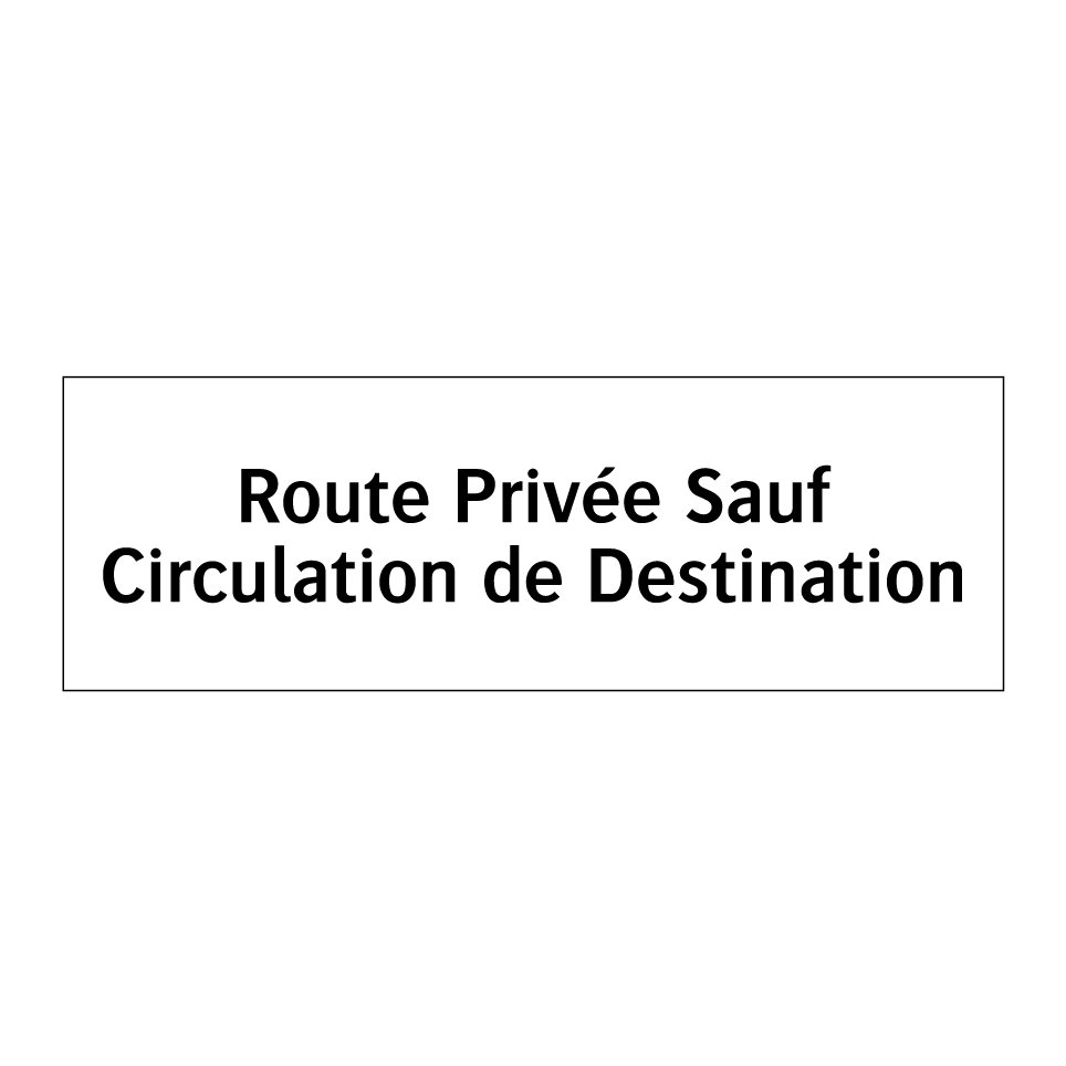 Panneau d'interdiction avec le texte : "Route Privée Sauf Circulation de Destination"