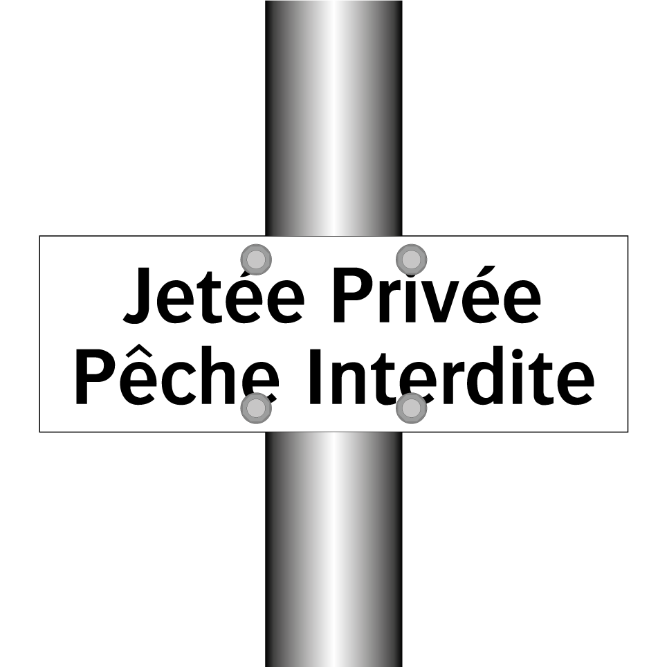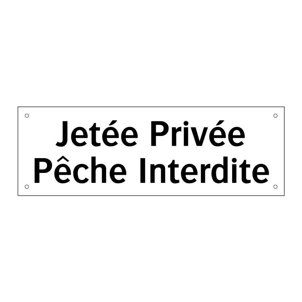 Panneau d'interdiction avec le texte : "Jetée Privée Pêche Interdite"